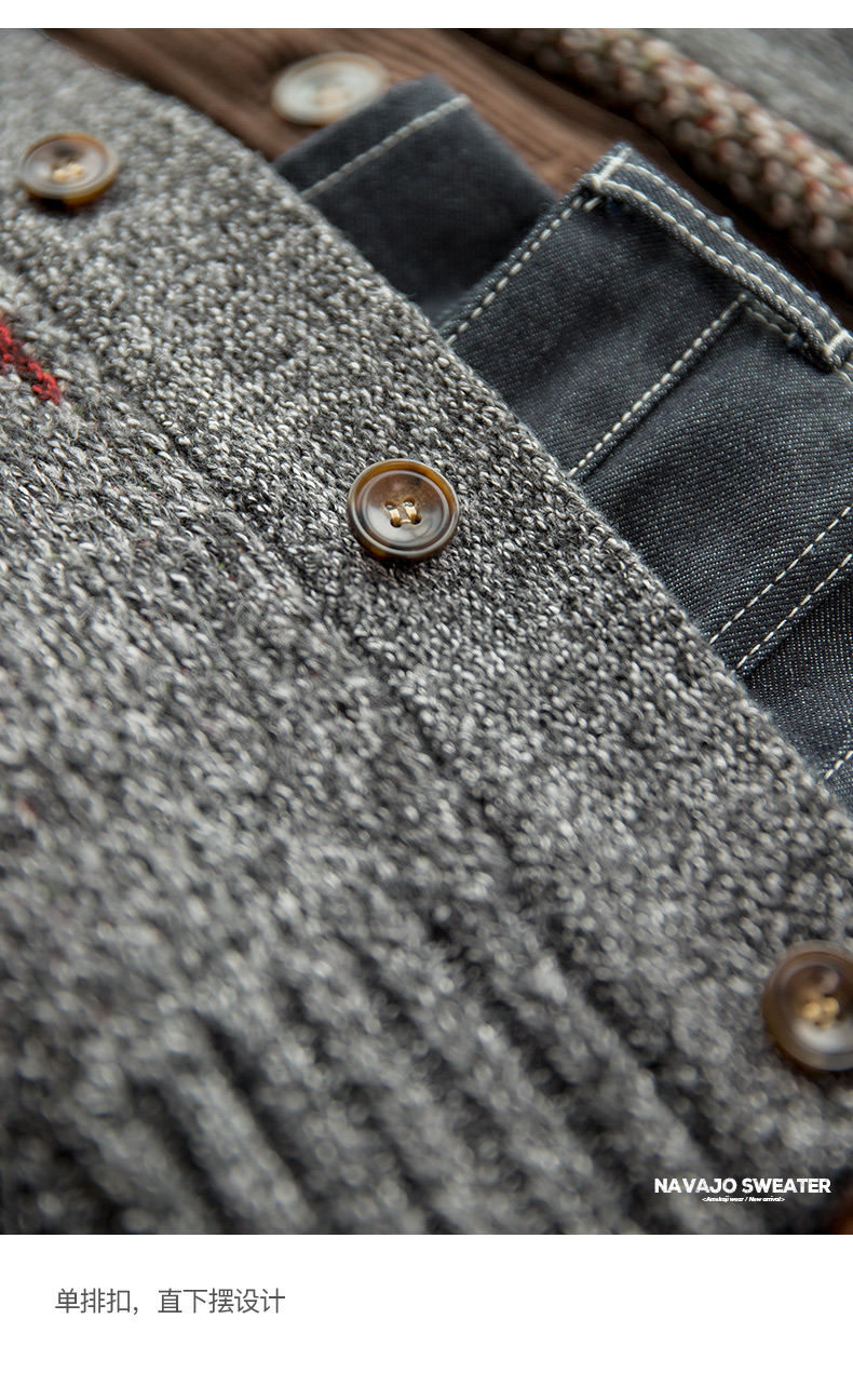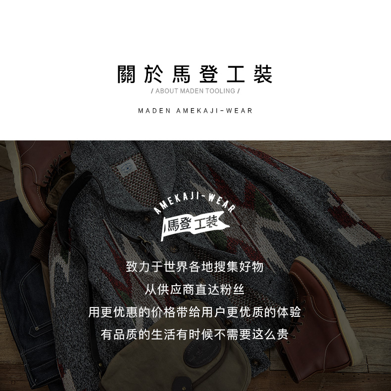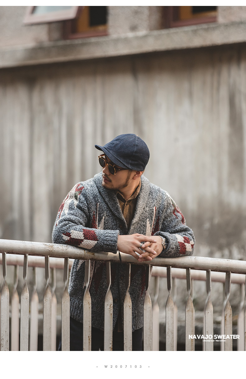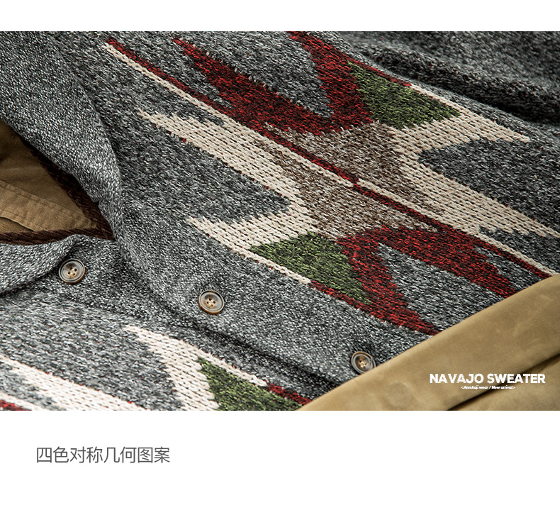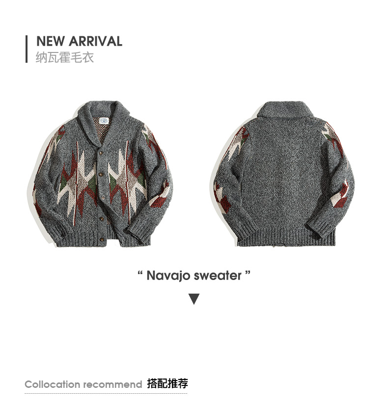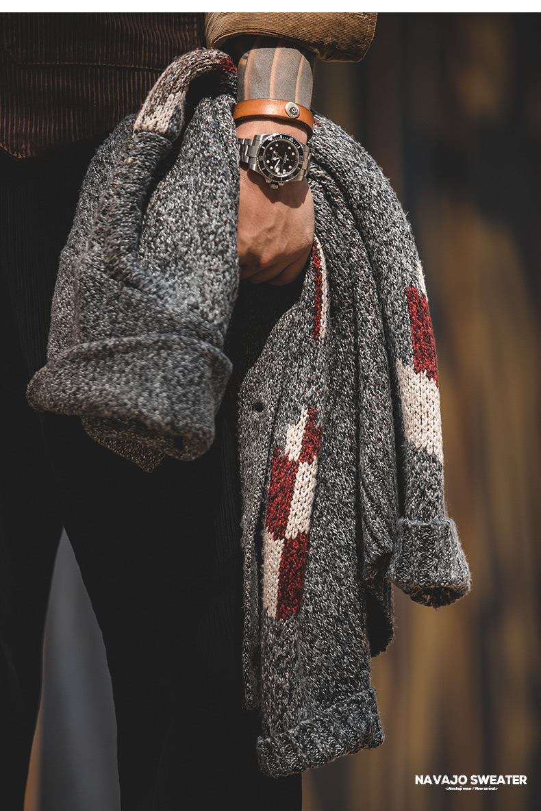 工装优选 美式复古印第安纳瓦霍开衫毛衣青果领加厚针织衫外套男潮