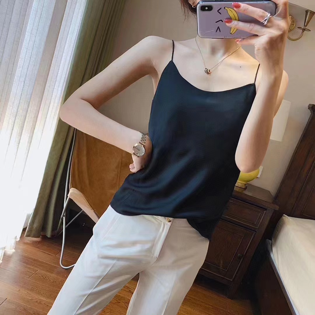 醋酸桑蚕丝缎面系带打底吊气质带背心 华美小V领必备吊带