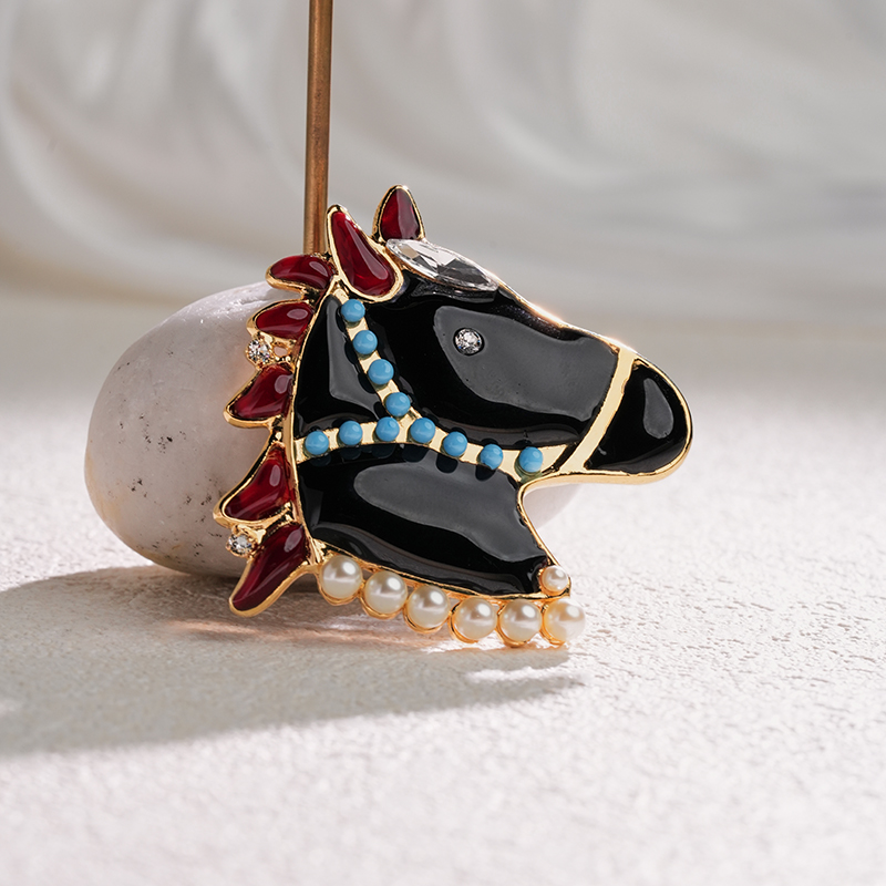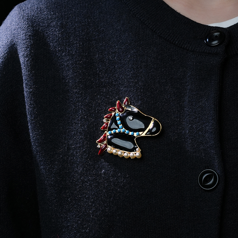 订购4个月到|Gripoix Paris-royal horse-一匹黑马 深墨 小萌马 胸针[法国设计师]