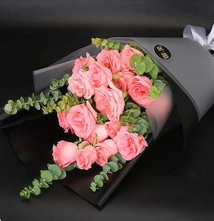 戴安娜玫瑰(粉玫瑰)19枝,尤加利叶适量