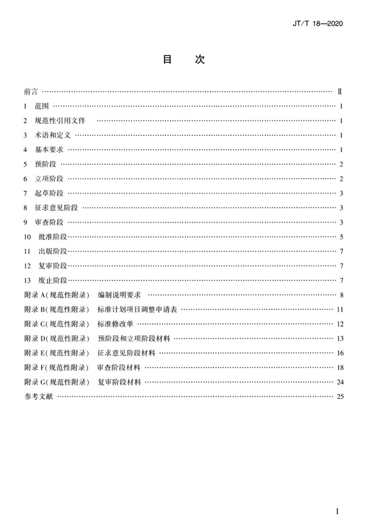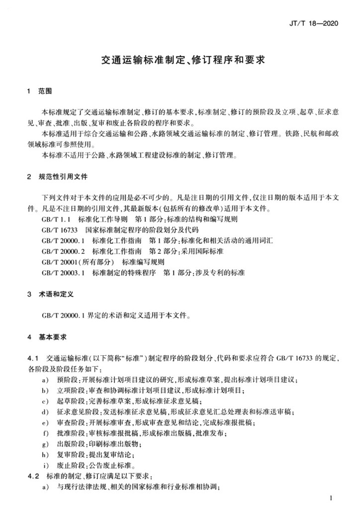 | 交通运输标准制定、修订程序和要求(JT/T 18—2020) | ||
