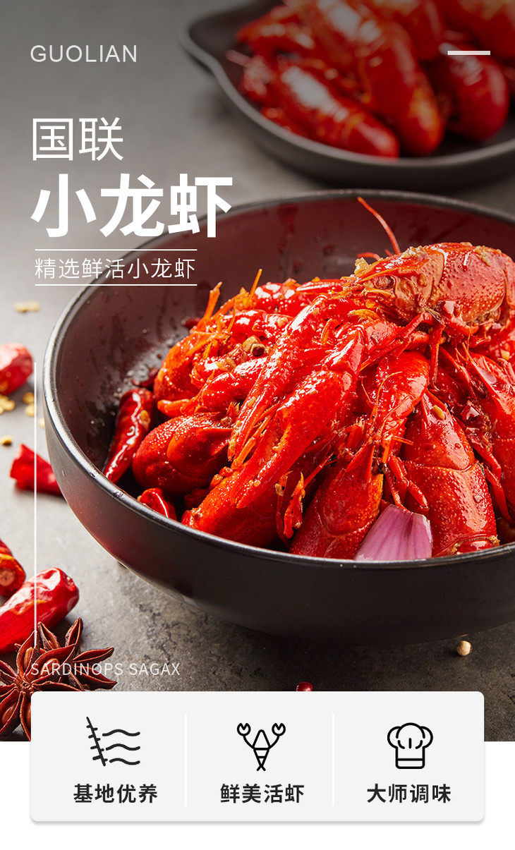 【立减100元】(3盒~十三香味)国联小龙虾750g*3盒