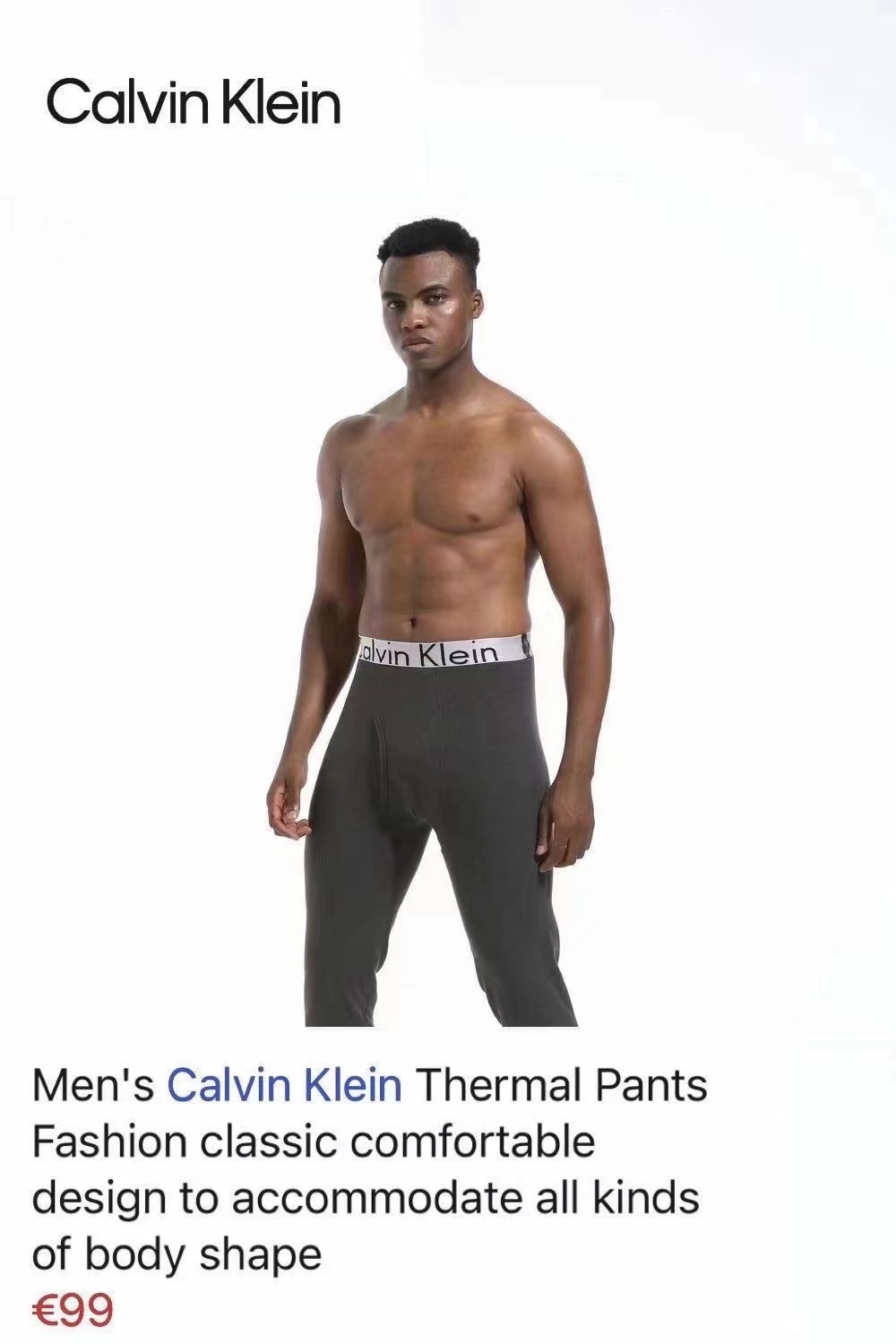 威海产!!CK秋冬季男士高弹徳绒黑科技发热秋裤打底裤保暖裤~