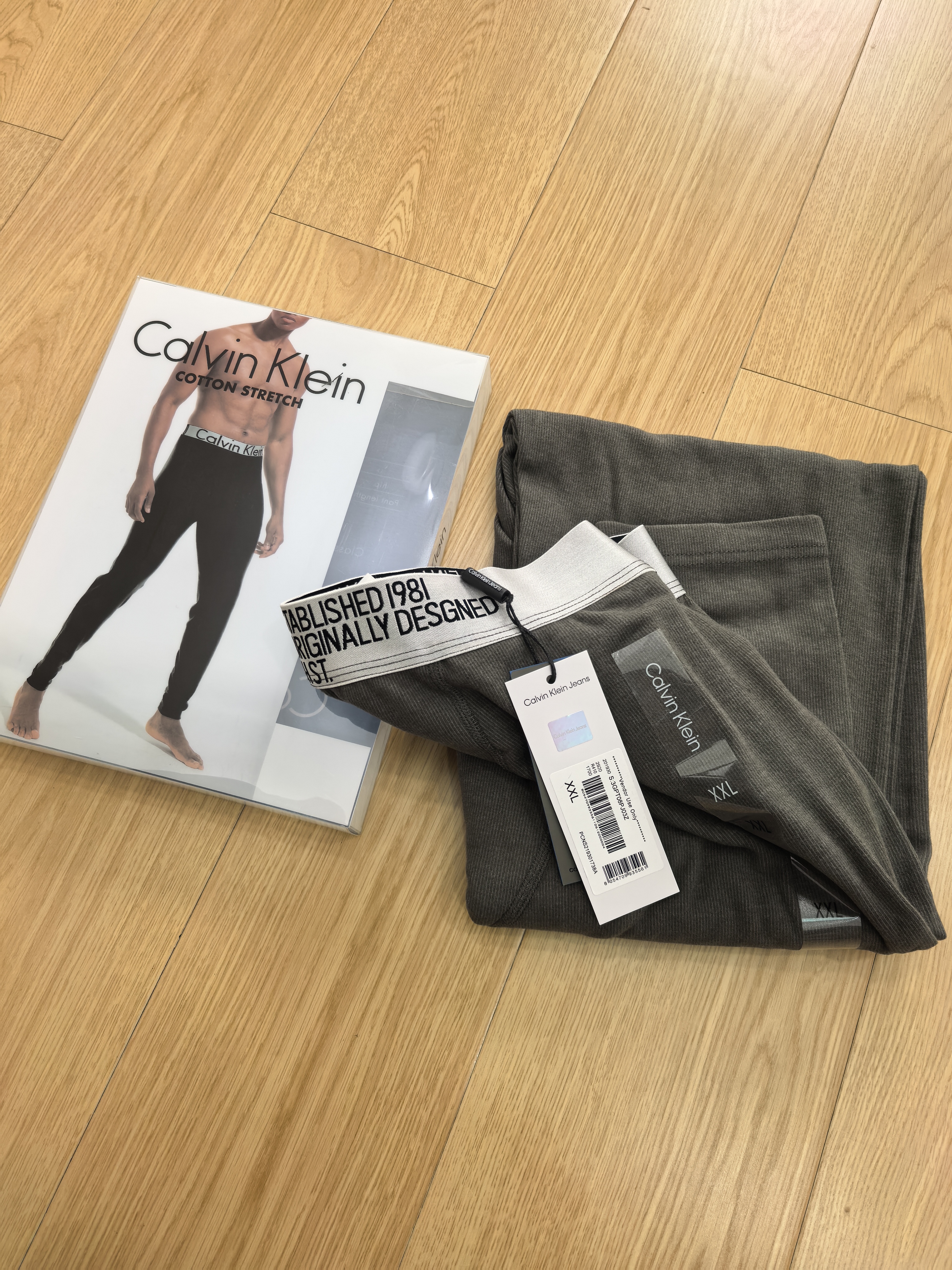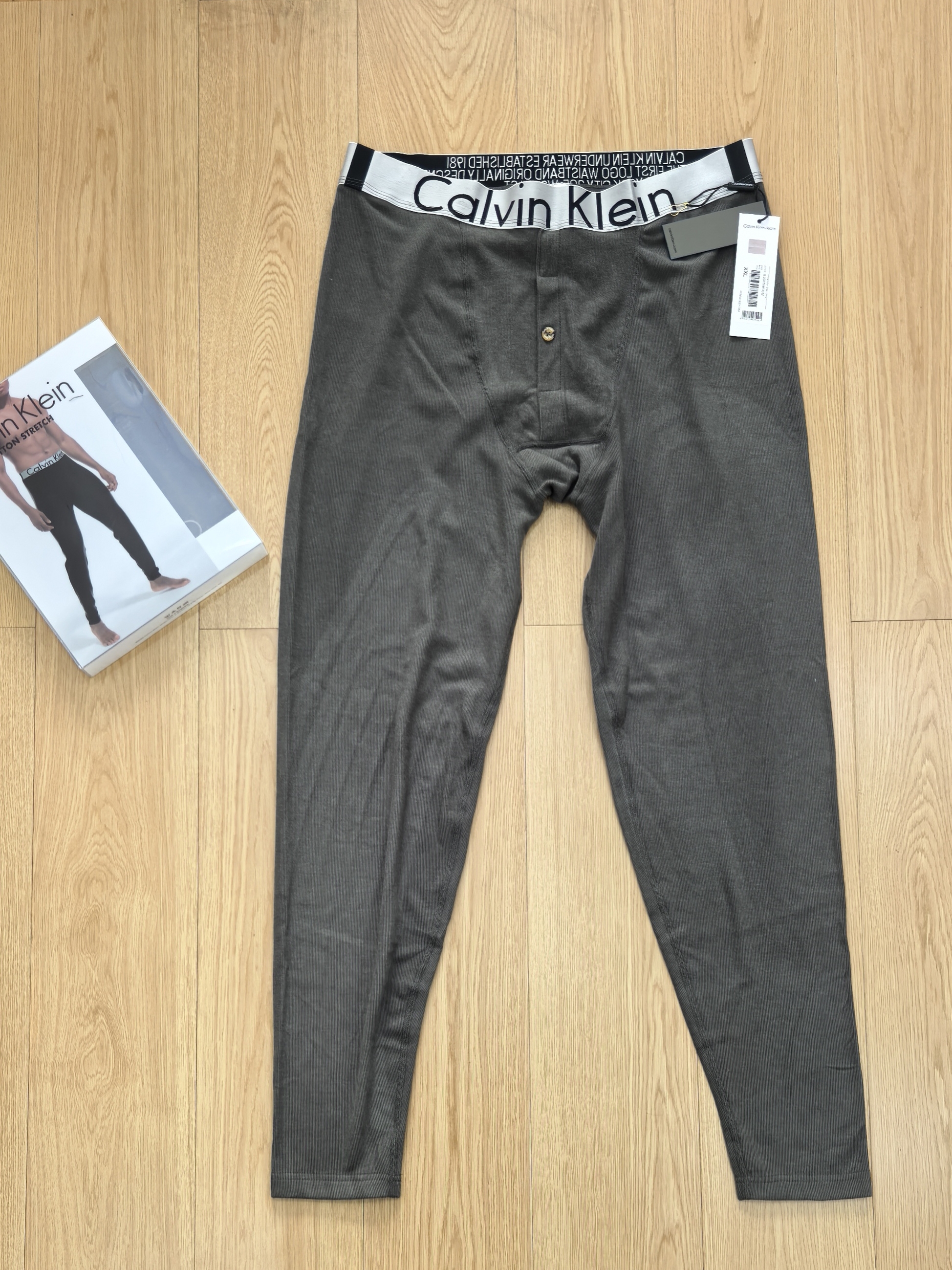 两色!!黑色➕灰绿色!!独家公司订单,CK秋冬季男士高弹徳绒黑科技发热秋裤打底裤保暖裤~ CK保暖裤