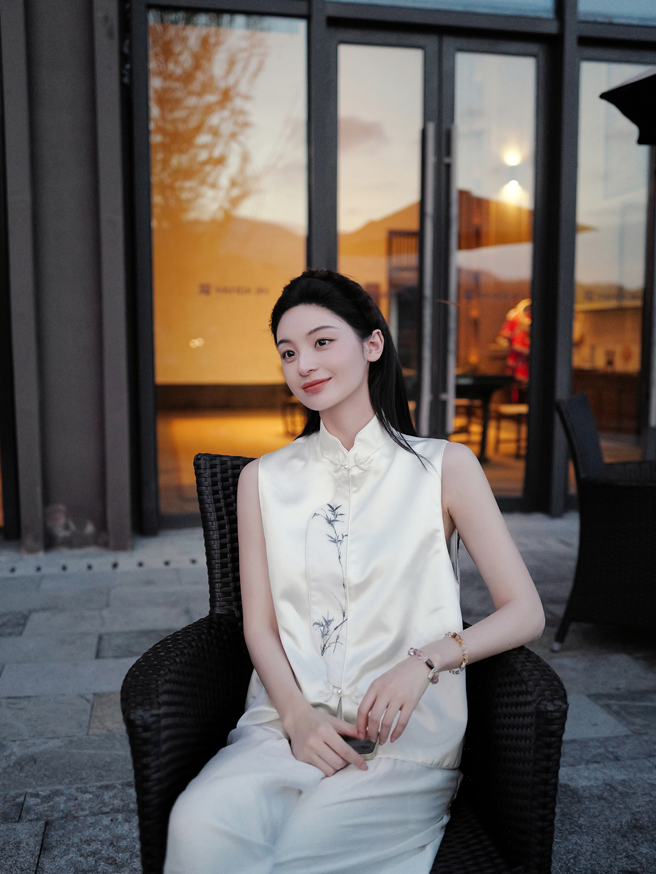 盛唐牡丹盛奢系列 | 文竹手绣重缎真丝马甲