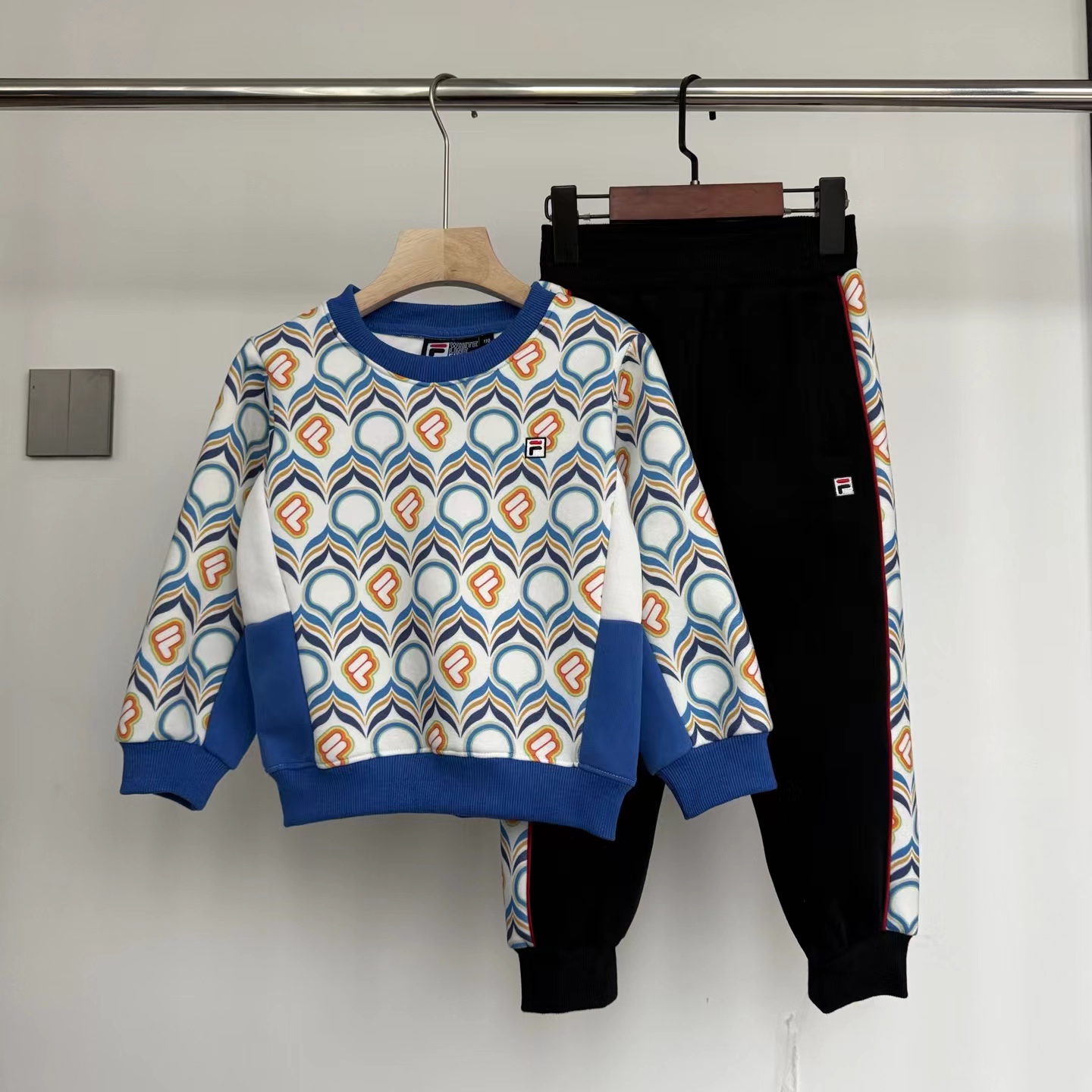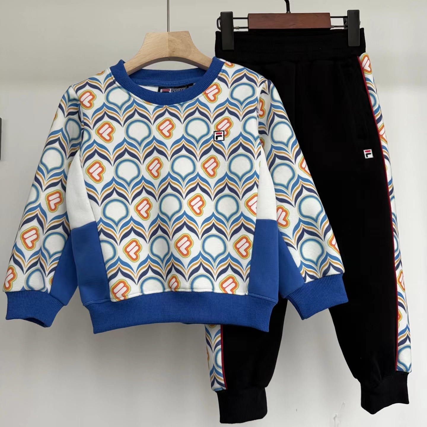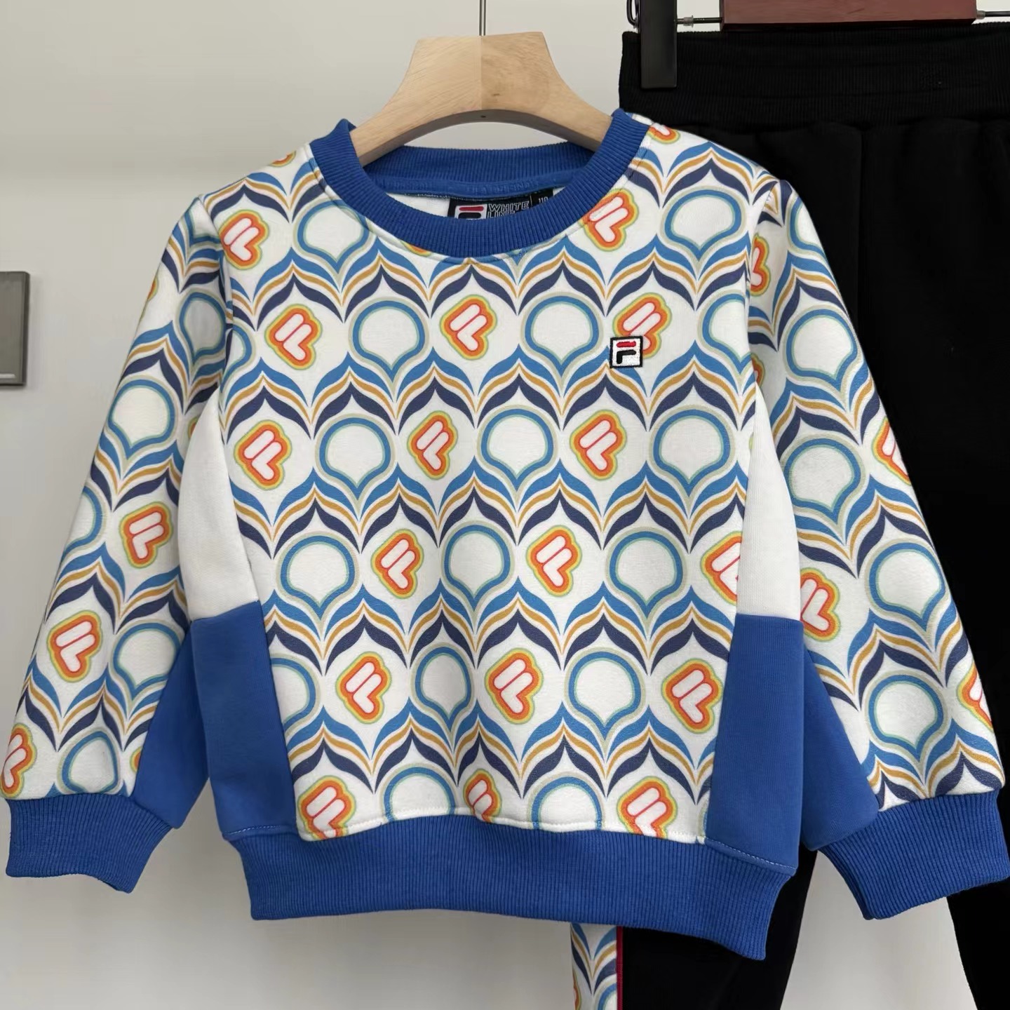 2025春季新款满印圆领套装!定制横机螺纹!拼接裁剪缝制,工艺杠杠的!大布印花哦!做工精 致,面料柔软细腻!活泼可爱,又好看!精典圆领款式!懒人搭配!内搭外穿都可以!颜色也很漂亮!万针logo刺绣!松紧腰胖瘦都可以穿!收脚口、干净利落!活动自如哦!春季出游B备单品!男女宝宝都可以穿!