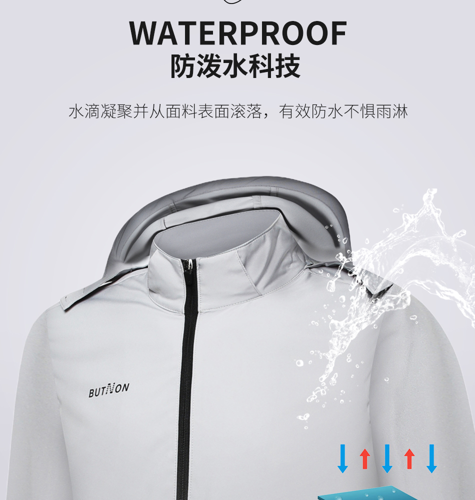 1611巴特侬butnon男士梭织连帽风衣防风透气100%聚酯纤维 商品图10