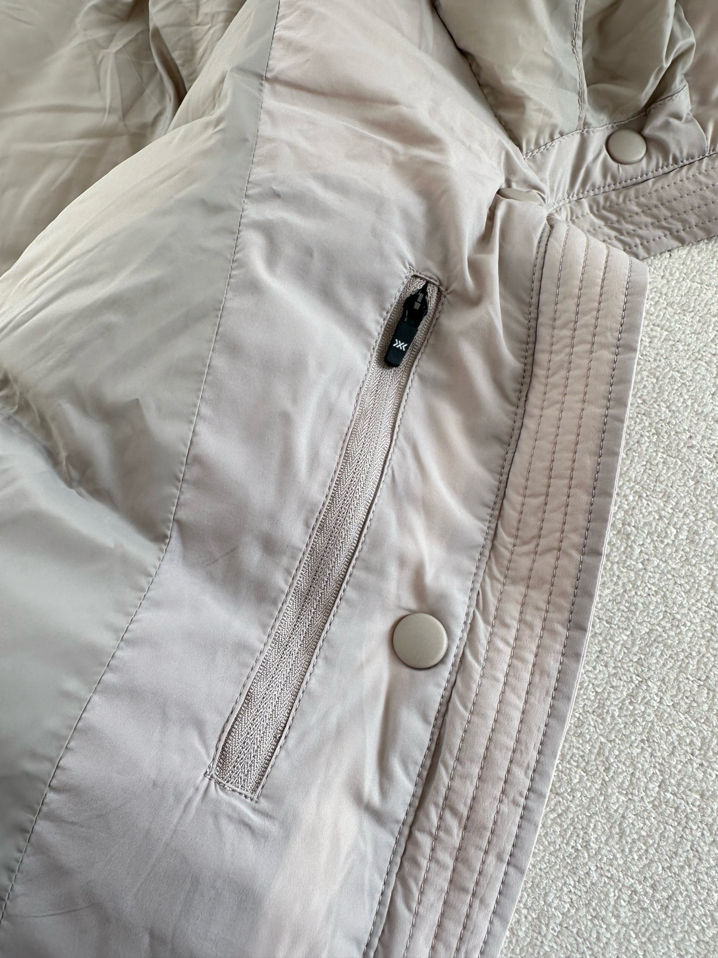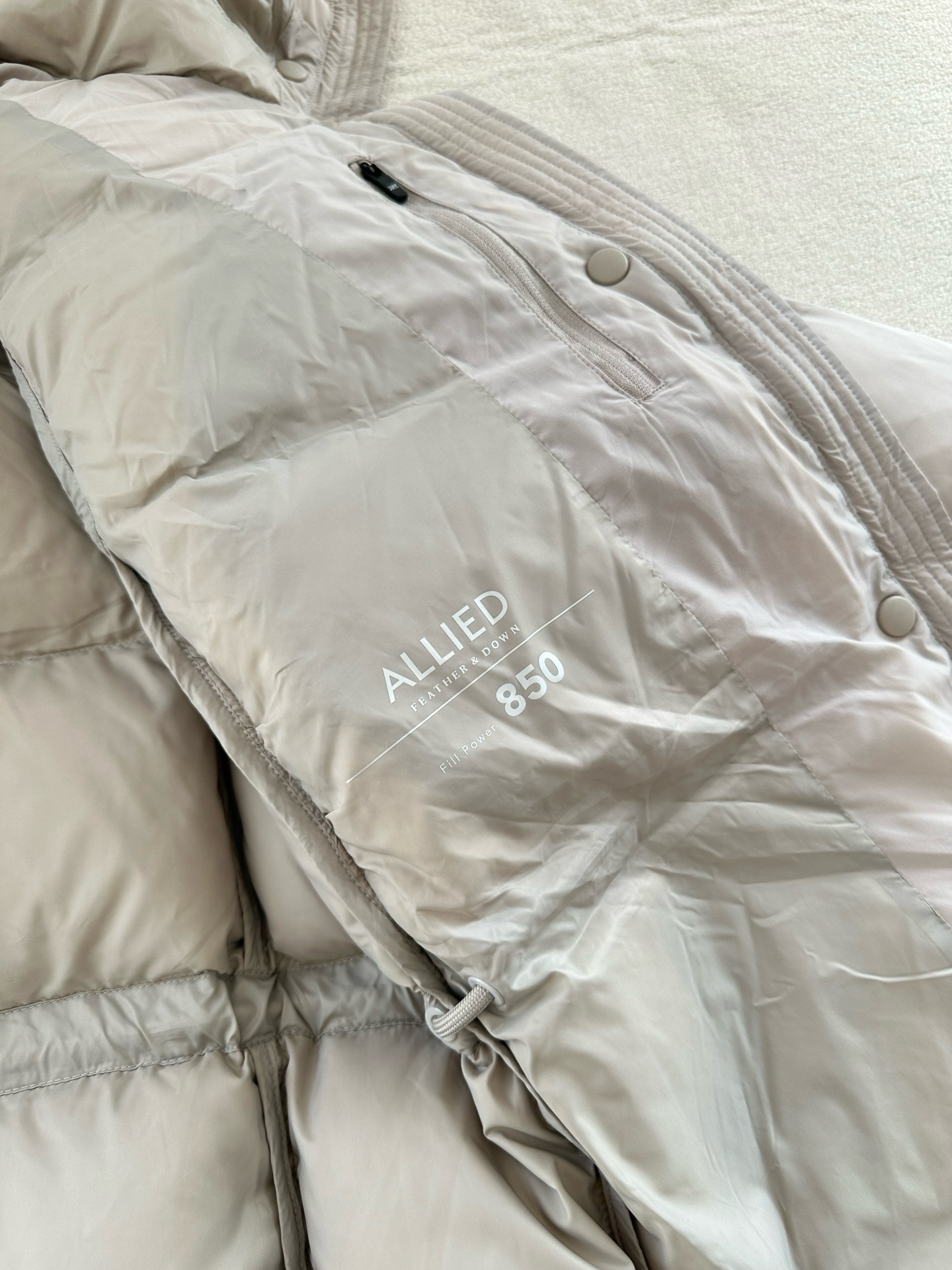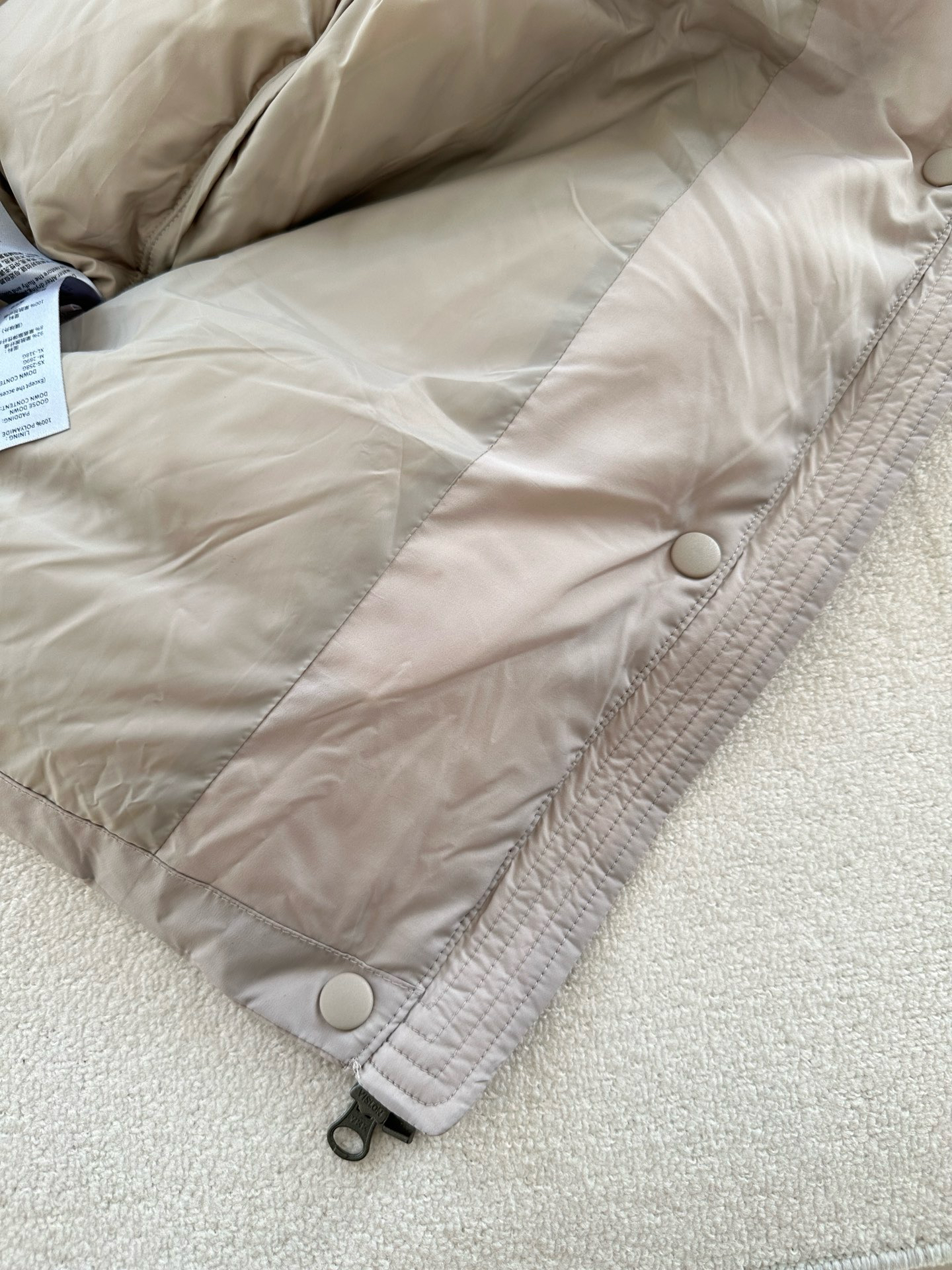 不会钻绒,这点真的很重要,每年冬季开放日,都有现场购物的客户反馈在某某某专柜买了一件羽绒服跑毛好严重,毛衣上到处都是毛,真的很尴尬,也很麻烦~