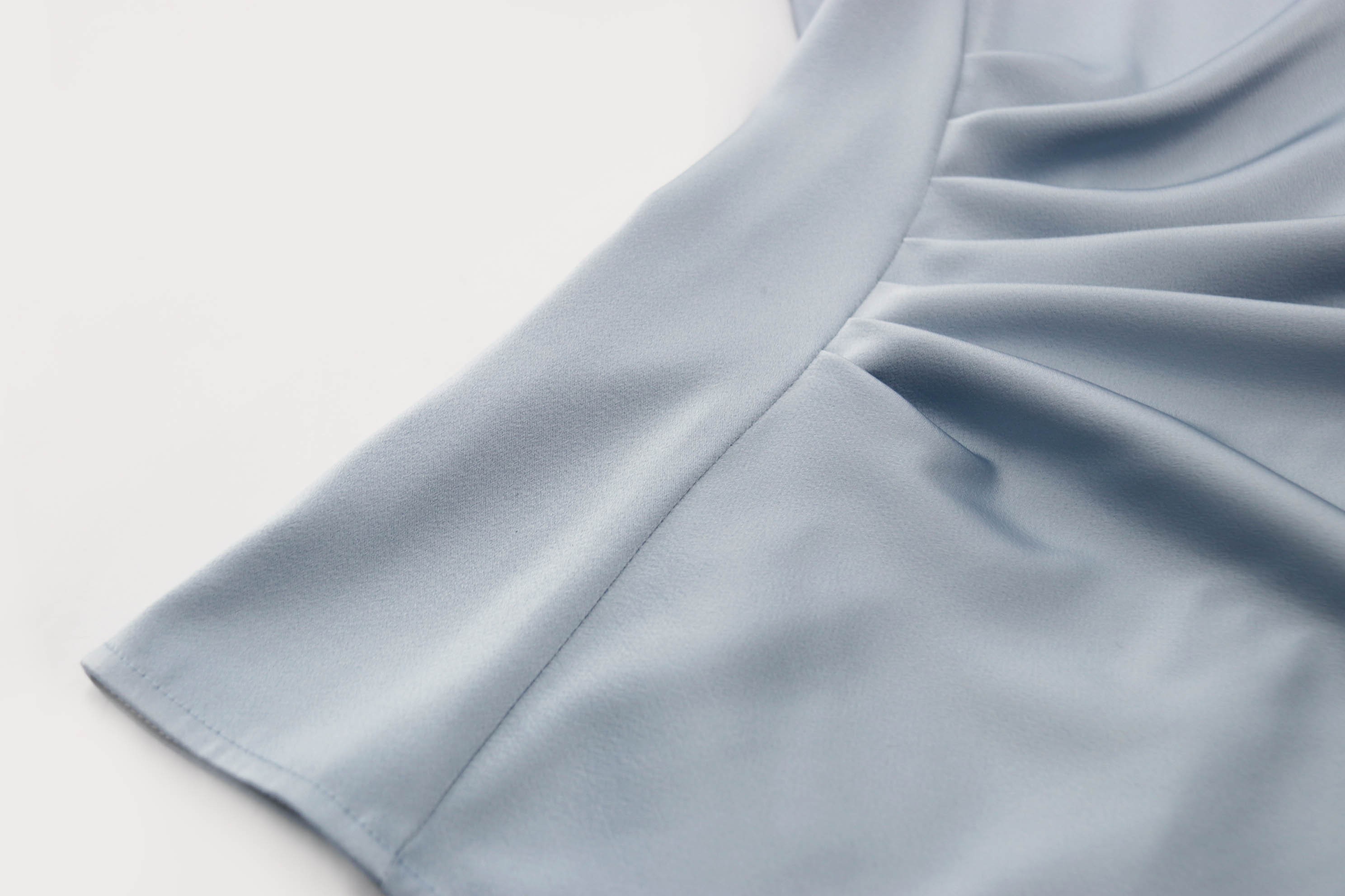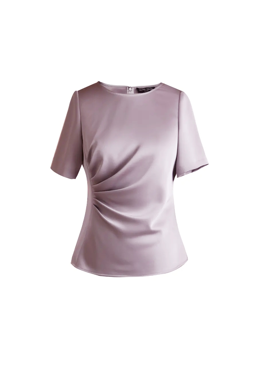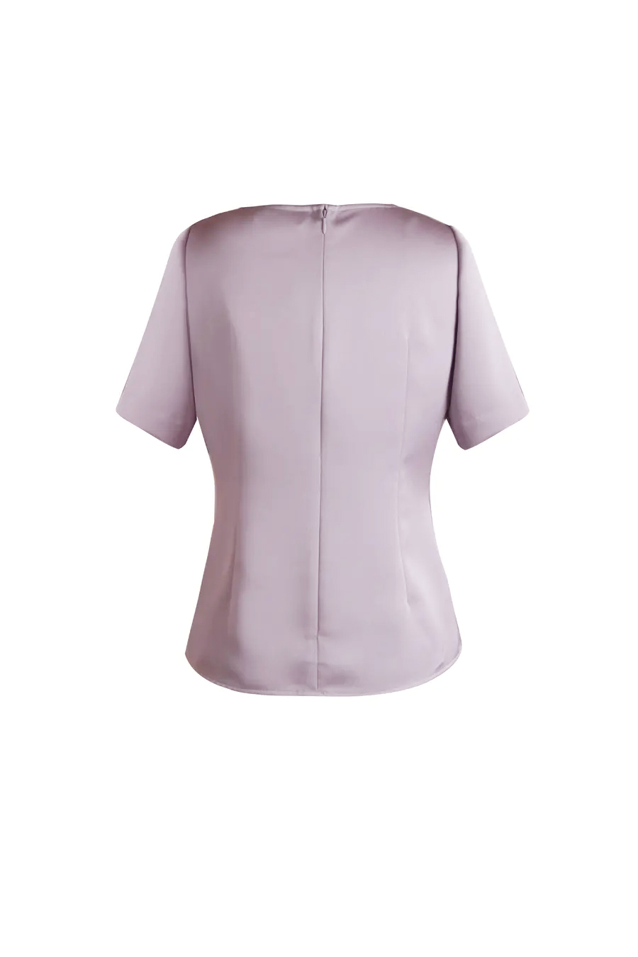 春夏时尚—修身设计感气质—抽褶圆领短袖显瘦 纯色上衣 1802042