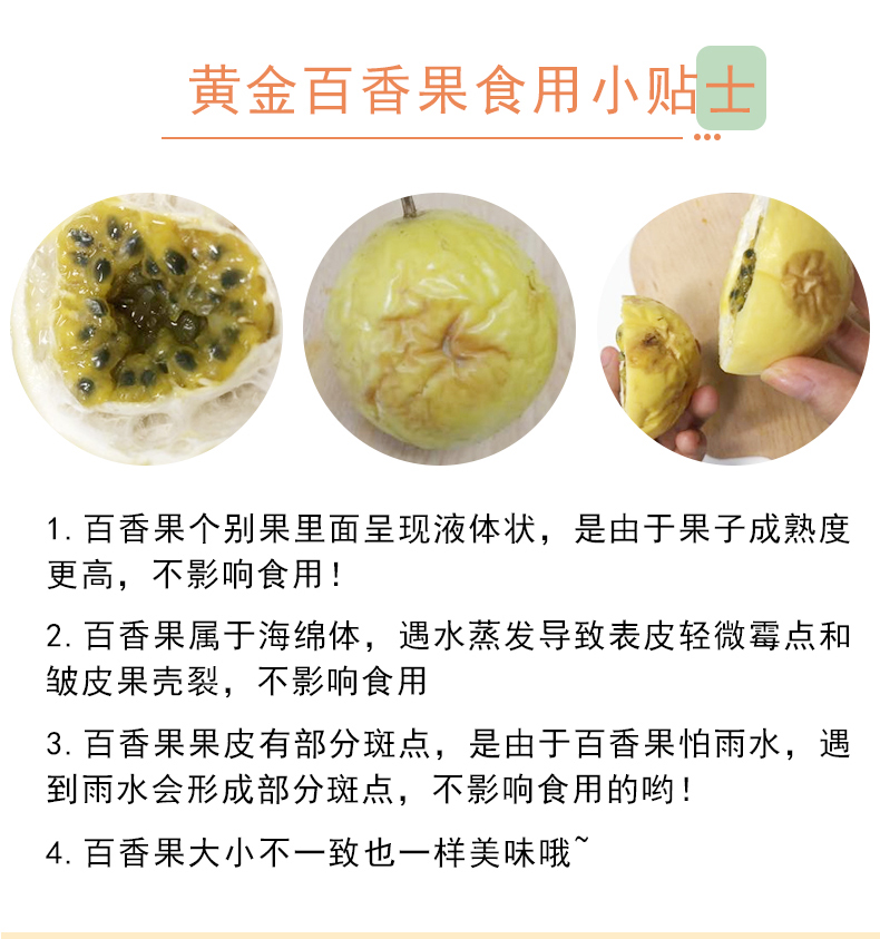 2.百香果属于海绵体,遇水蒸发导致部分表皮轻微霉点和果皮发皱,不影响食用的哦,介意慎拍