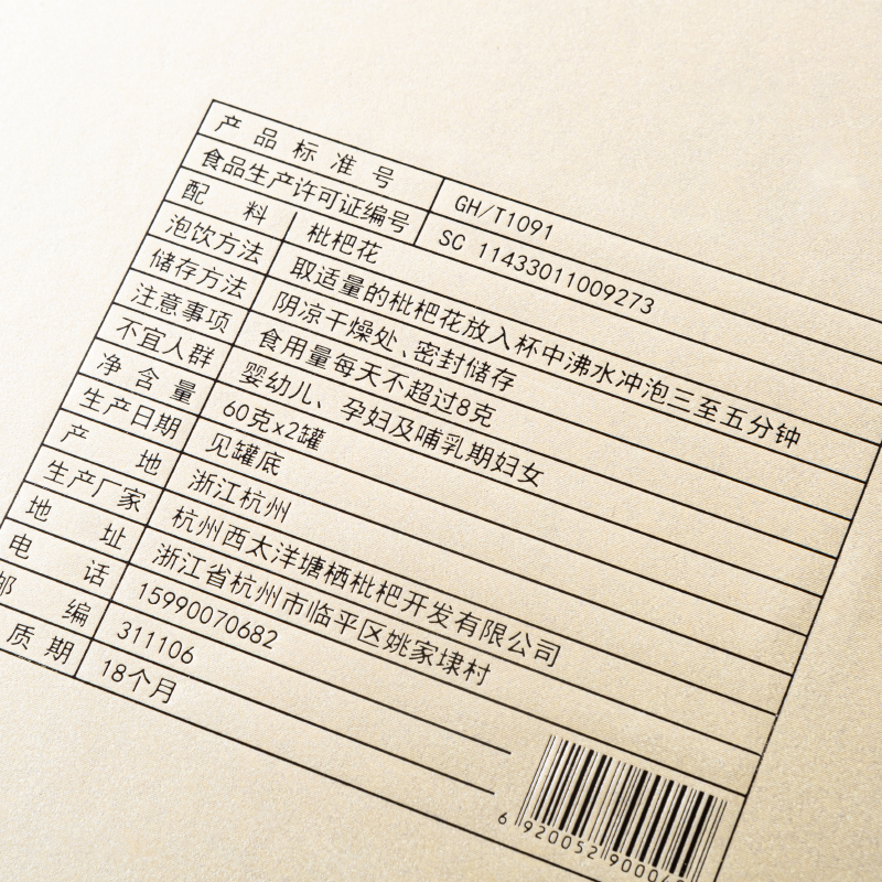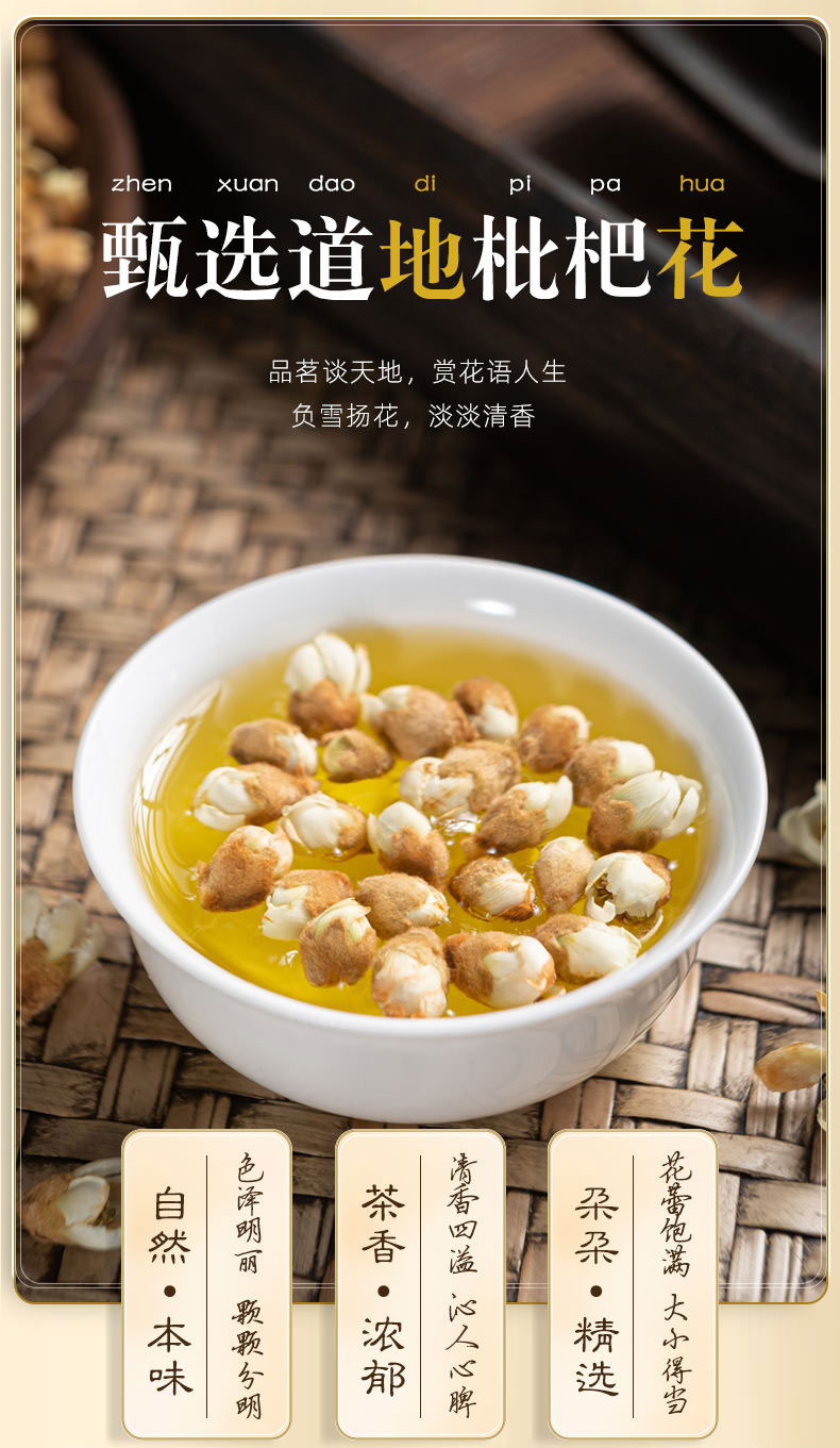 3.枇杷花瓣,20g/盒,保质期18个月。常规售价95元,优享价85元。