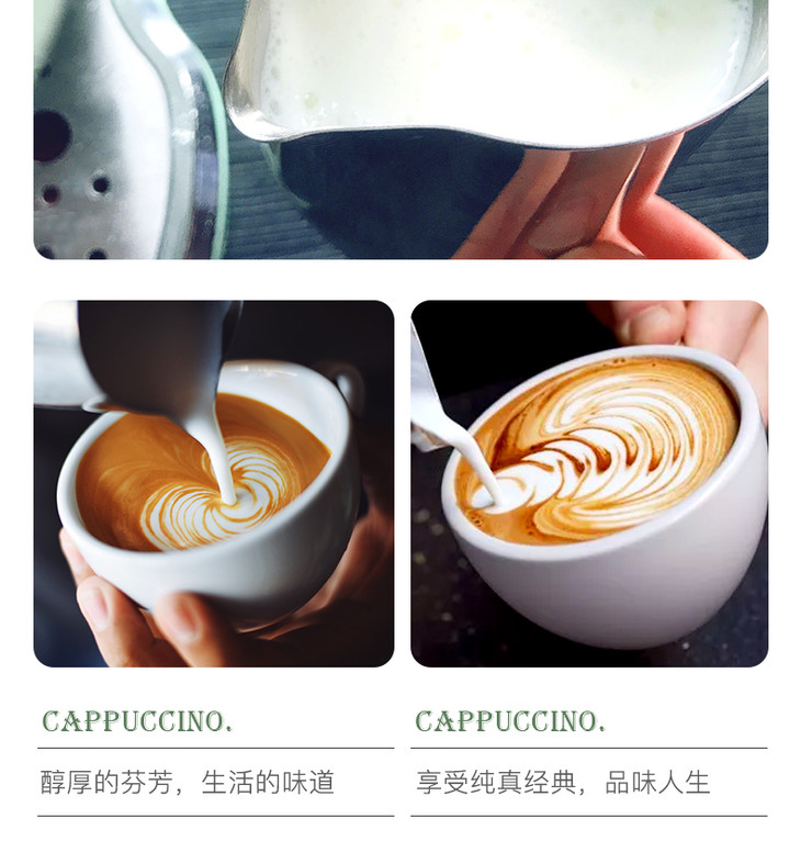 赠品:电动磨豆机+304不锈钢拉花奶杯(350ml家用容量)+精选咖啡豆(150g精美包装)