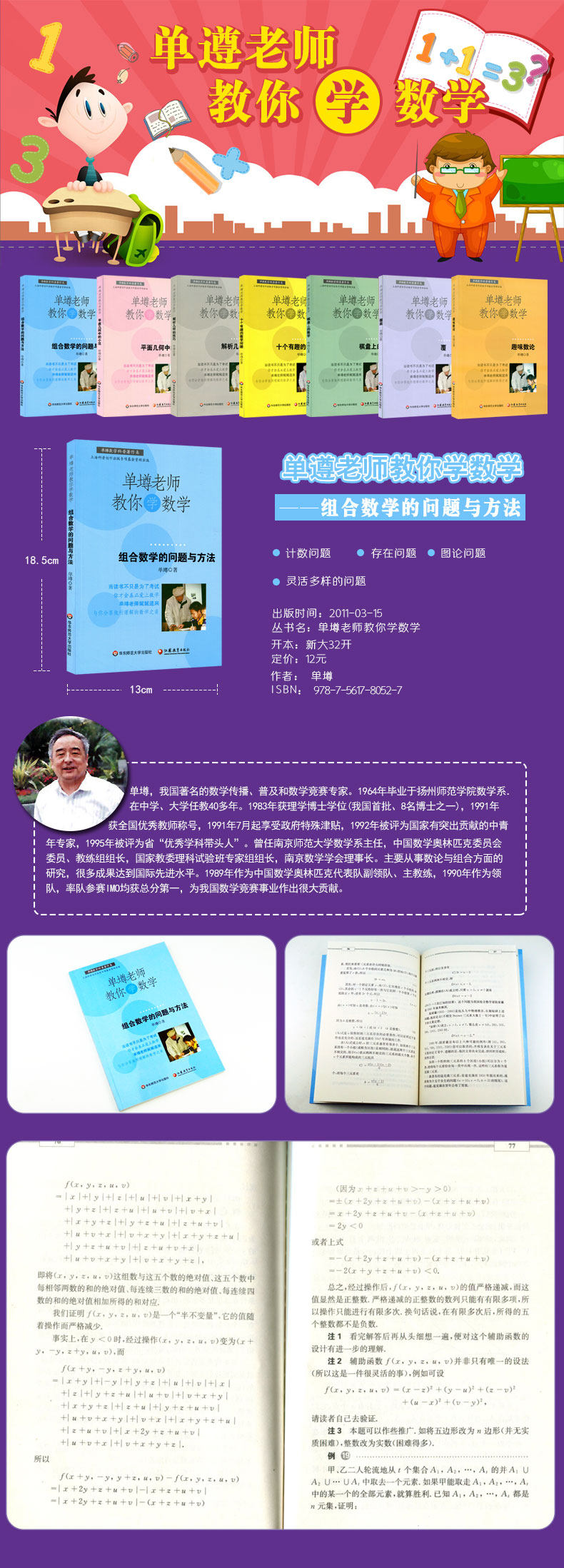 《单壿老师教你学数学——组合数学的问题与方法》通过一些实例,使读者对于组合数学的问题与方法能产生一点印象:“哦,这就是组合数学!”