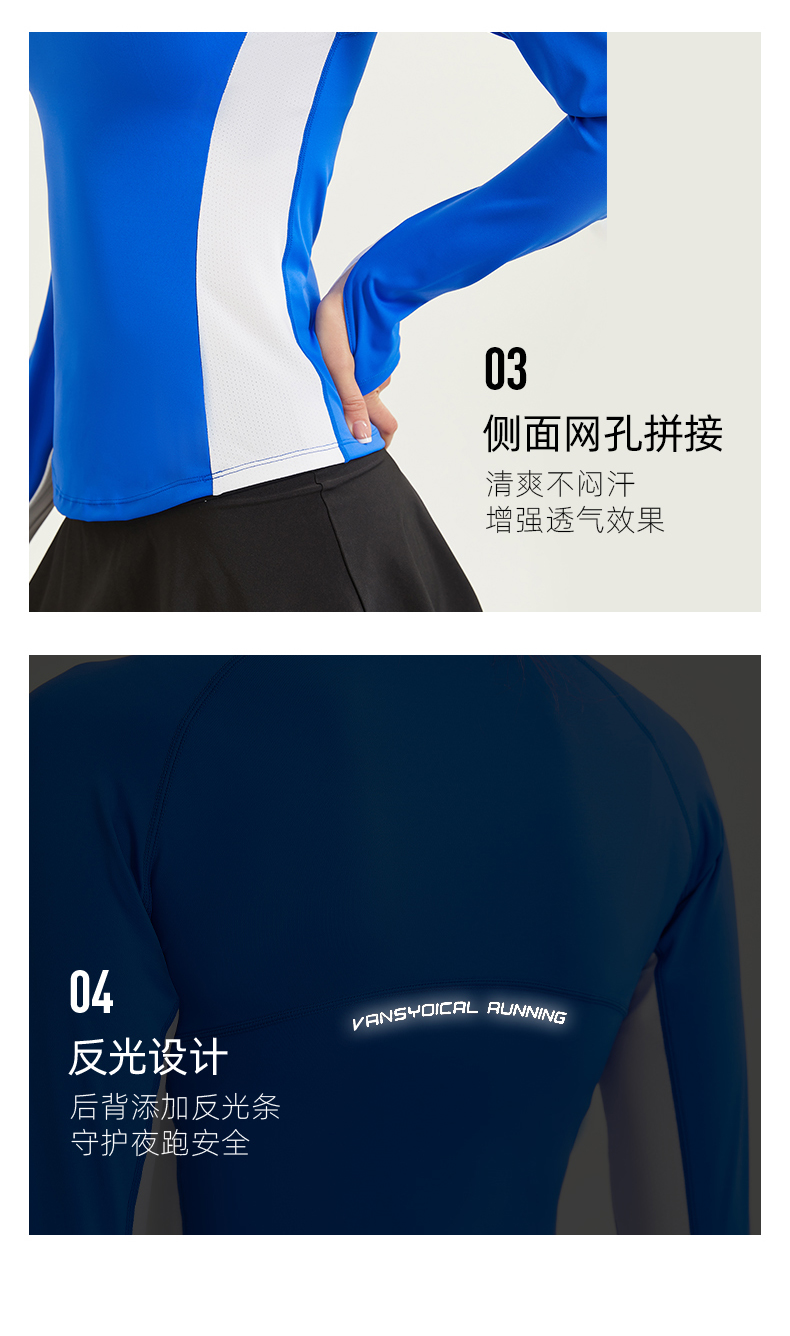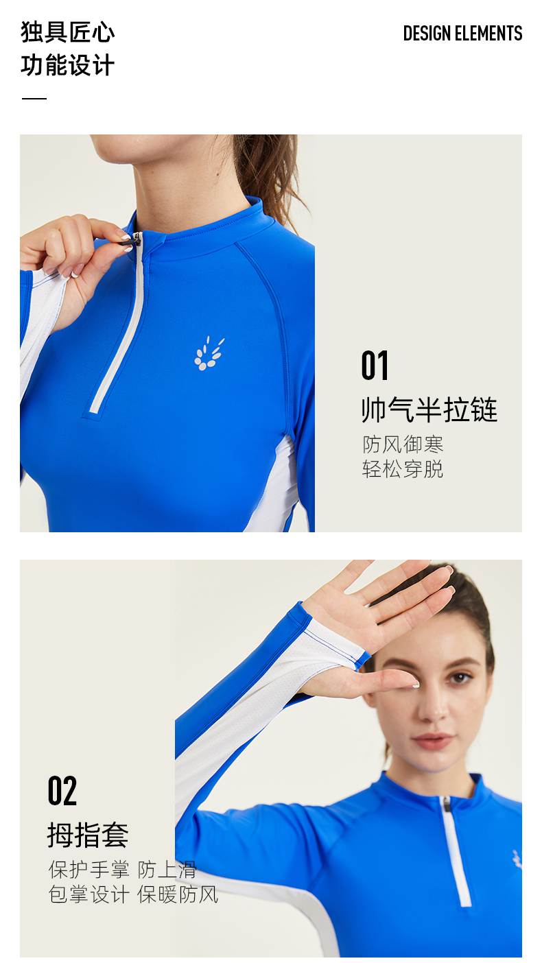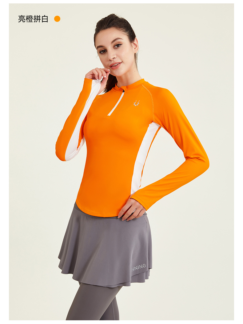 立领拼色抓绒T恤女长袖健身衣运动速干跑步长袖