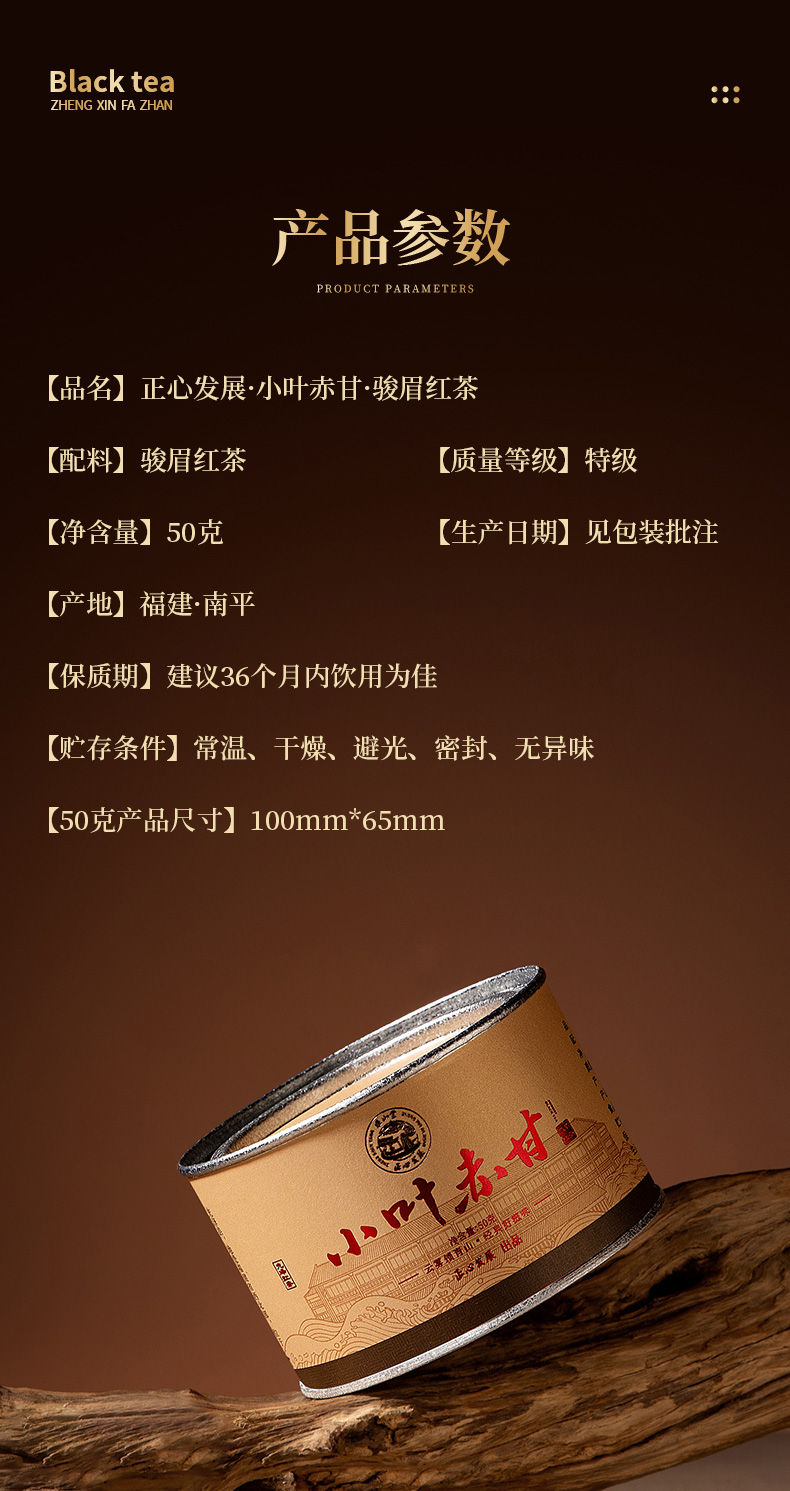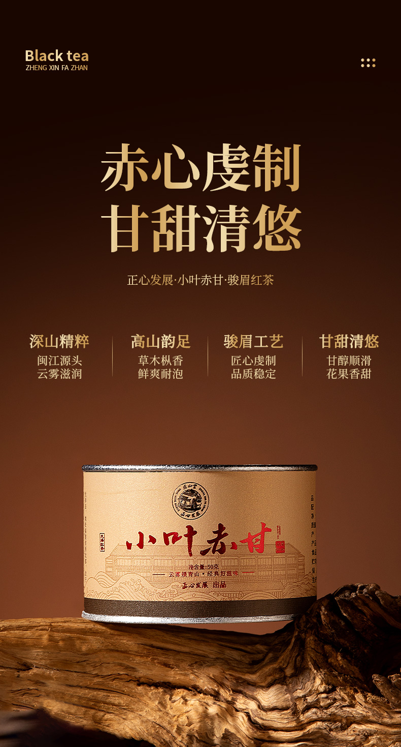 正山堂正心发展 小叶赤甘 特级红茶正宗草木香茶叶罐装礼盒送礼50g