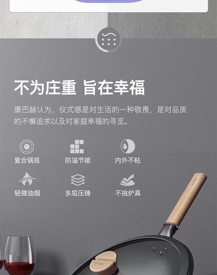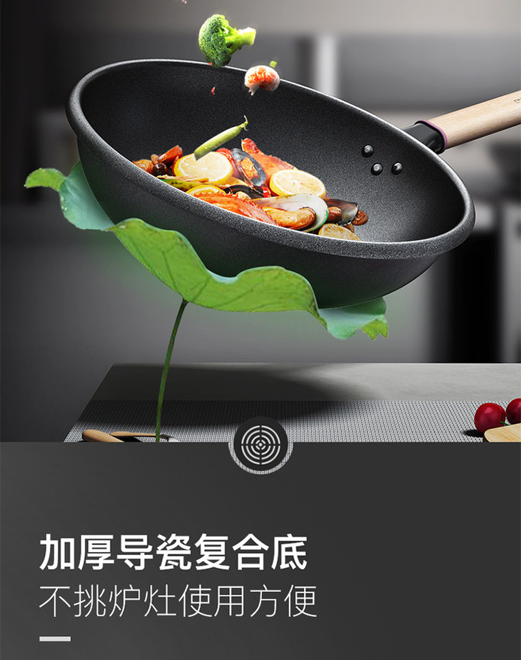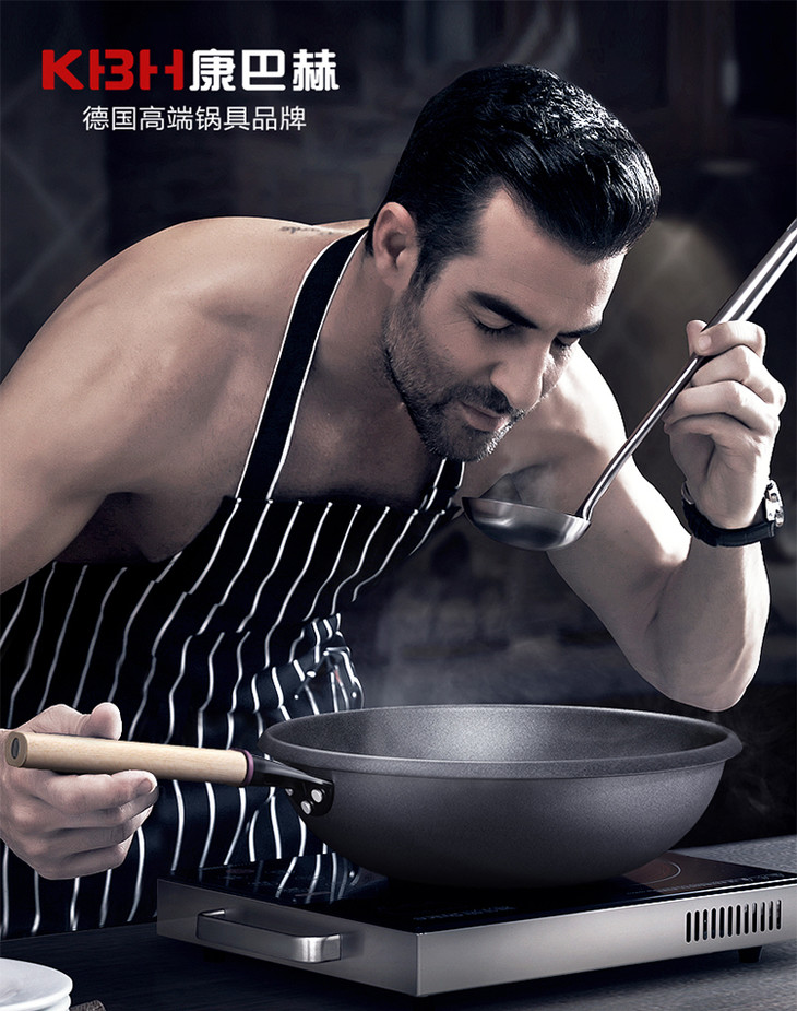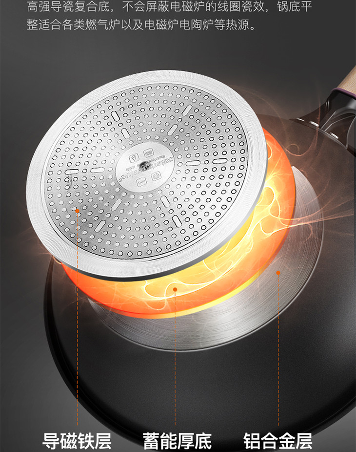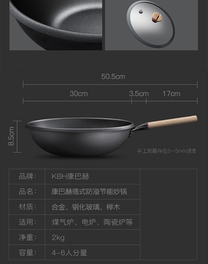 康巴赫防溢节能30cm炒锅家用煤气灶电磁炉专用锅炒菜锅