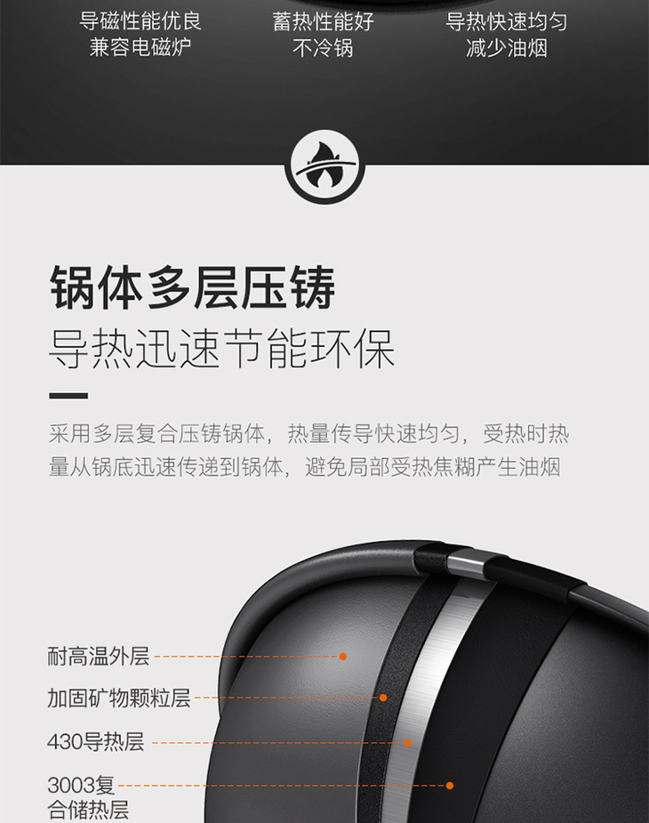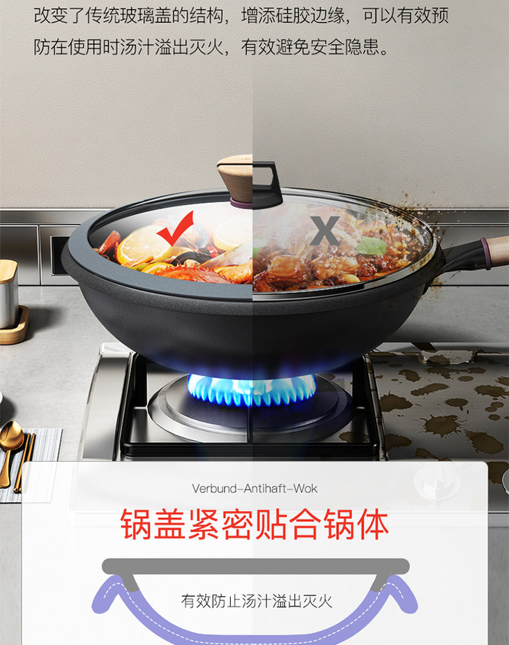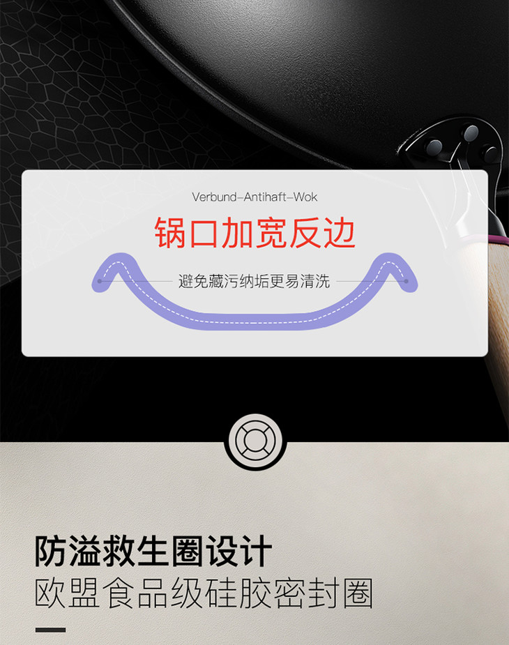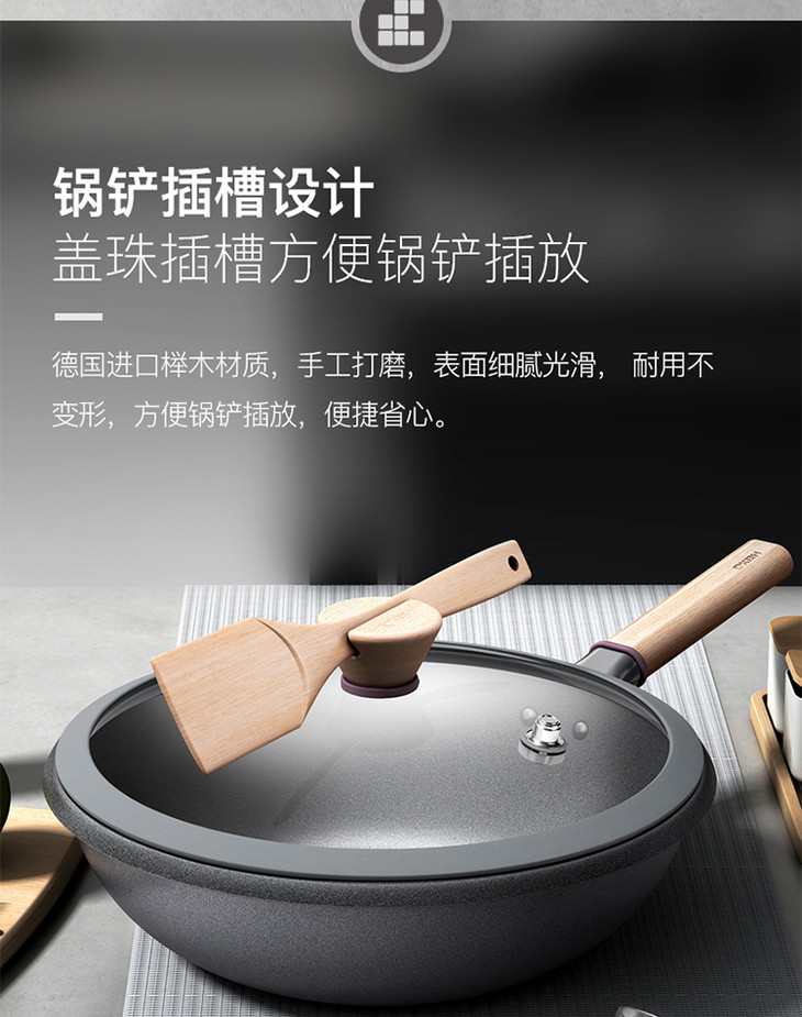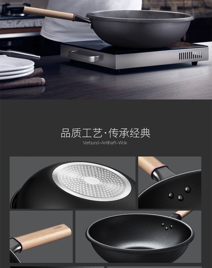 康巴赫防溢节能30cm炒锅家用煤气灶电磁炉专用锅炒菜锅