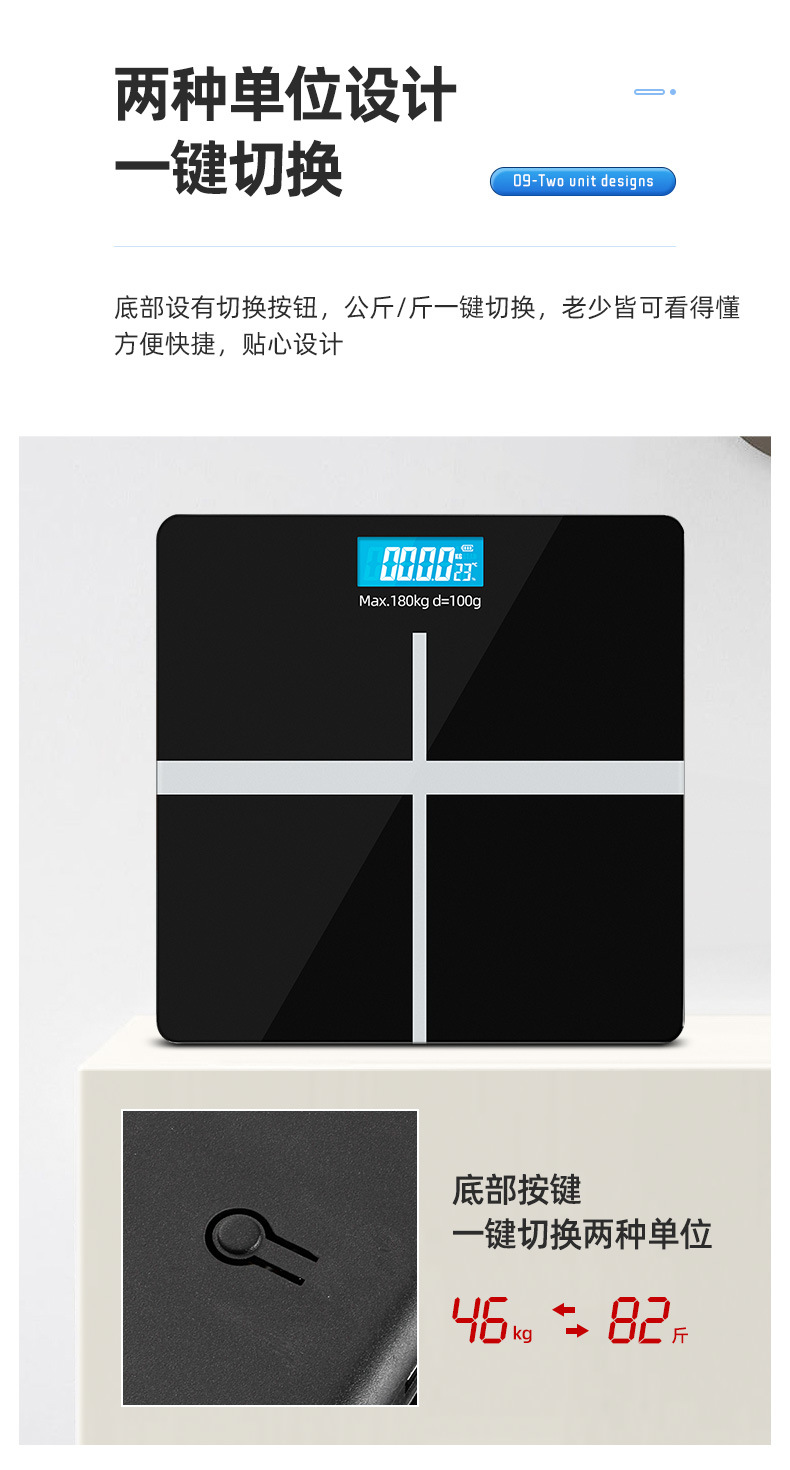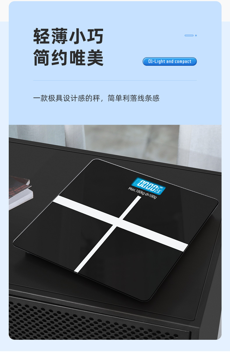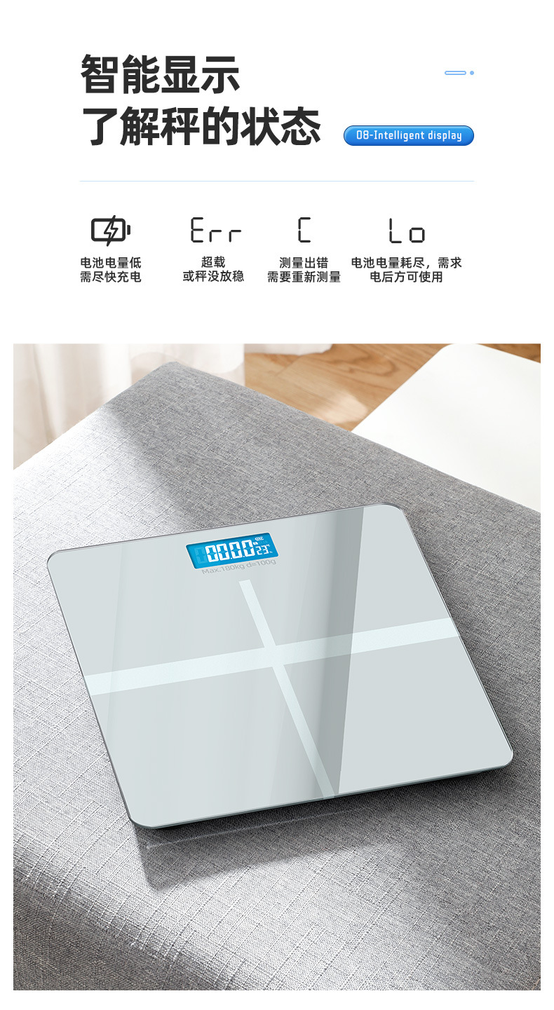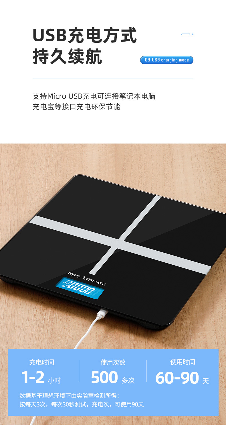 严选 家用智能体重称 可充电健康称健身减肥称人体电子秤体脂秤体重秤1个