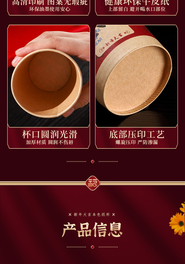 【平安喜乐50个】新年一次性纸杯搬家入宅红色加厚纸杯子一次性纸杯加厚