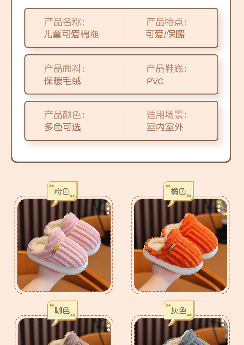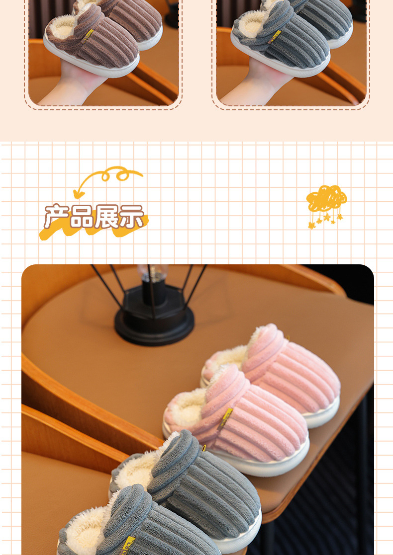 【防滑保暖包跟亲子棉拖鞋】儿童毛毛加绒冬季男童女童居家宝宝棉拖鞋