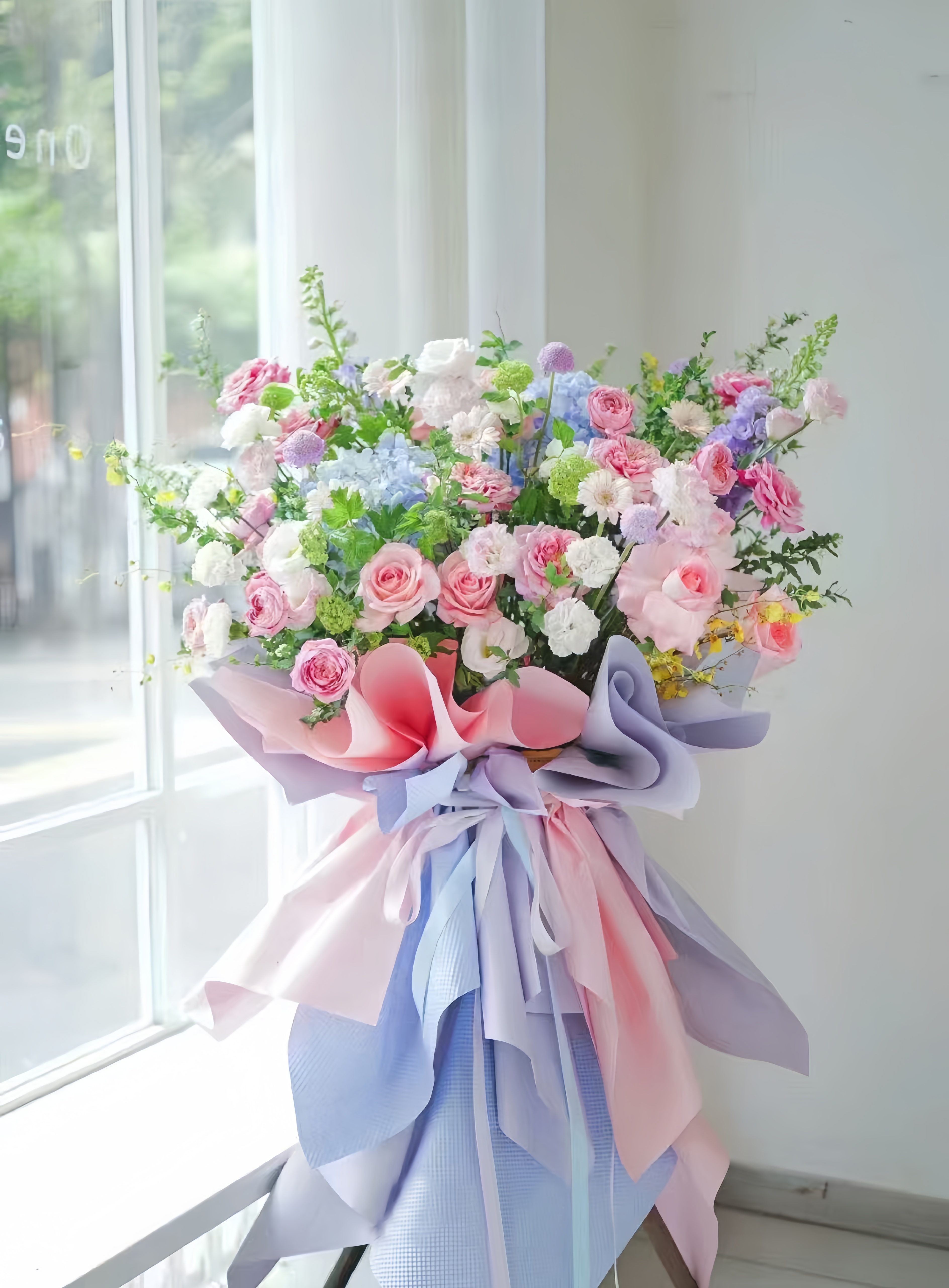 粉蓝色系开业篮派对款——开业花篮高端乔迁庆典商务用花|北京5环内免费送花上门