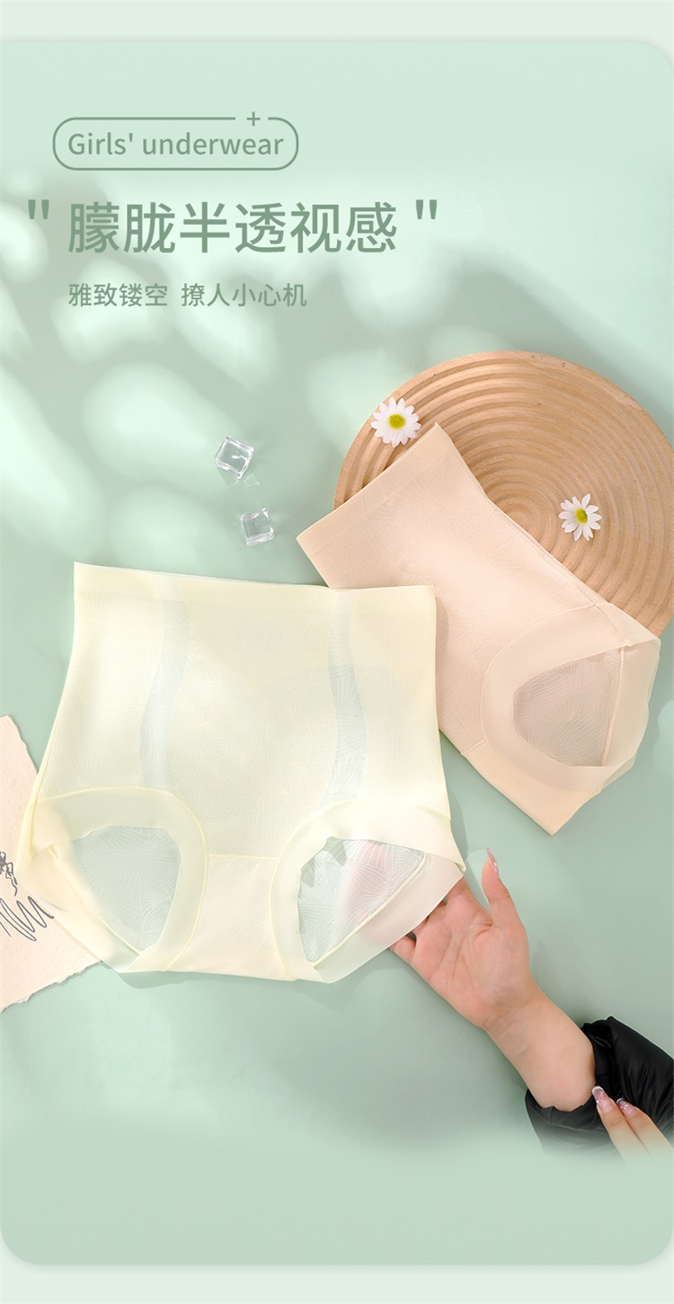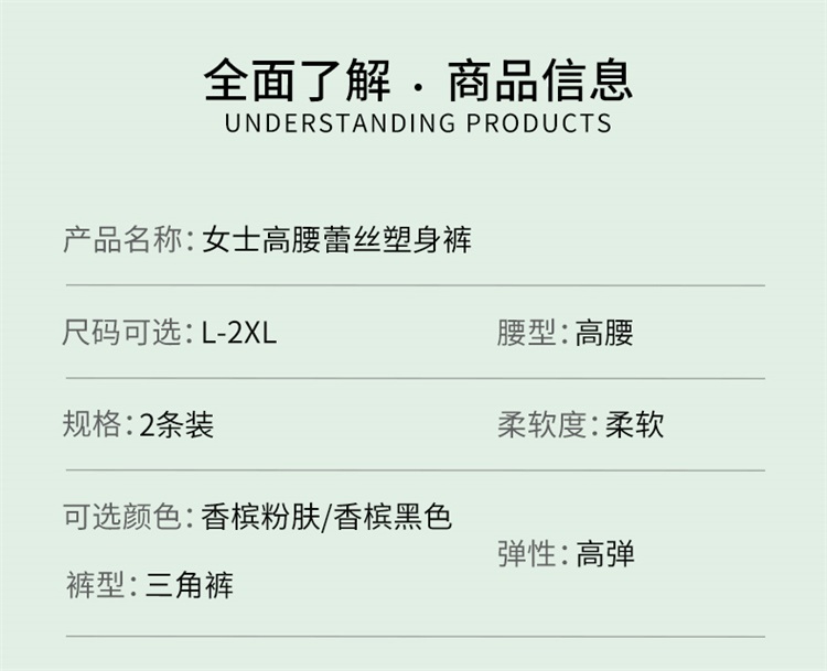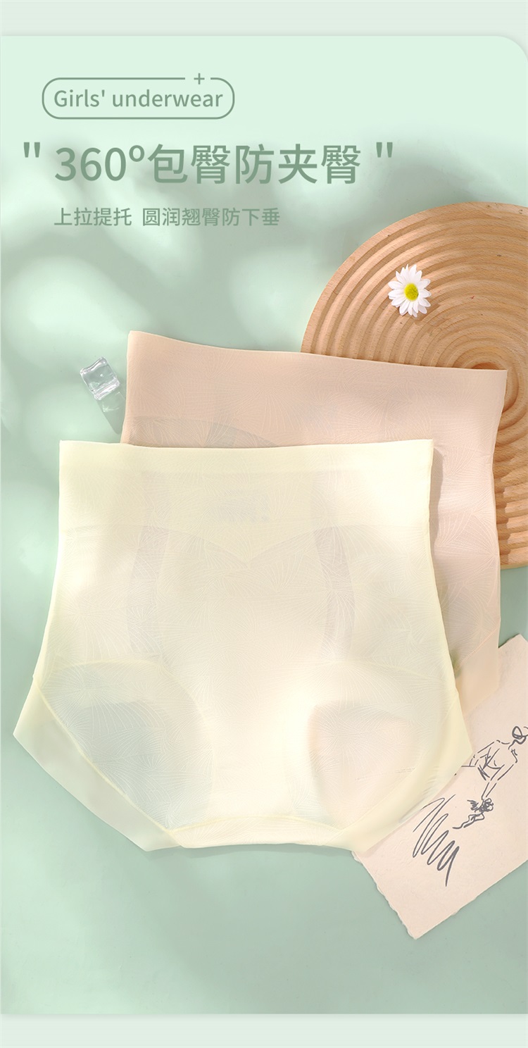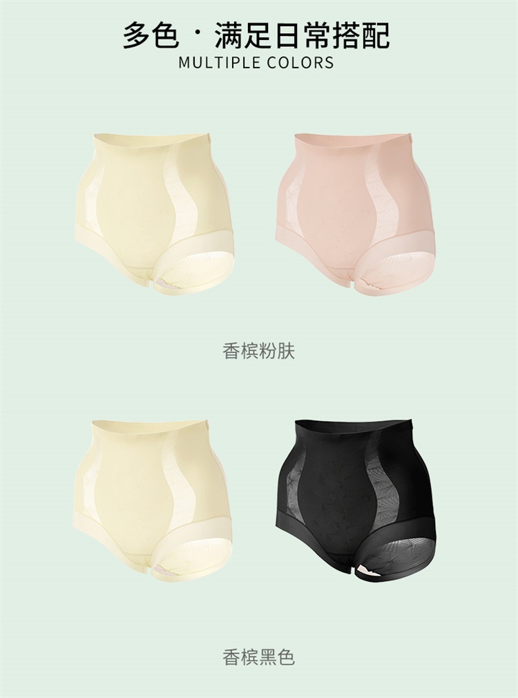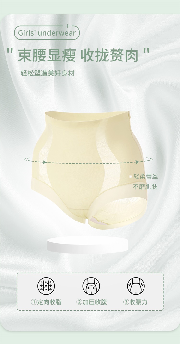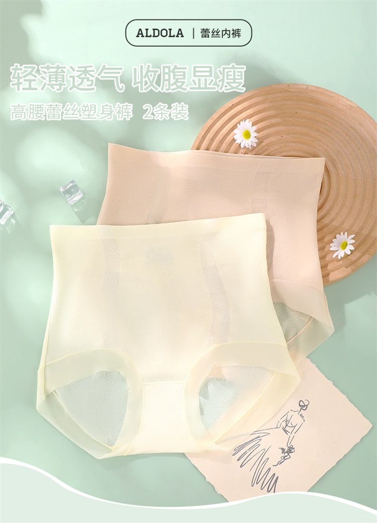 雅黛丽高腰收腹提臀三角裤性感蕾丝塑身裤轻薄透气含桑蚕丝底裆2条装