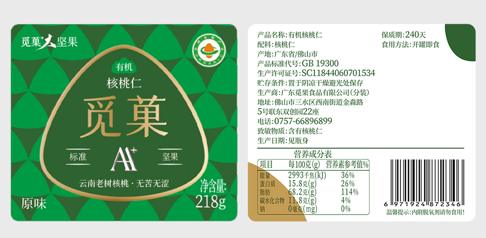 觅菓晚熟有机核桃仁218g孕妇儿童学生健康零食坚果