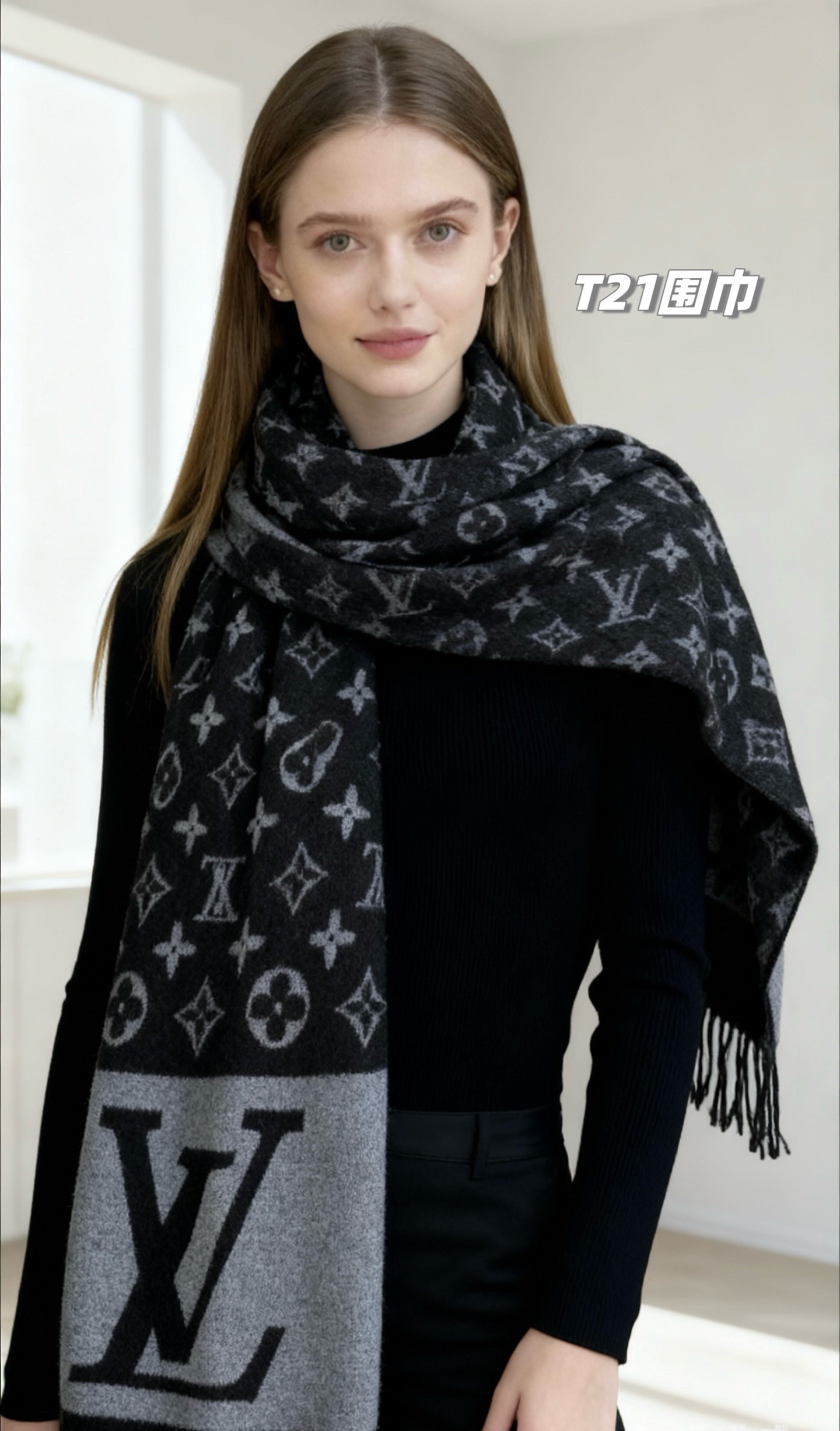 羊绒围巾,尺寸超大,65%羊绒+35%天丝,男女通用的精典黑,情侣款可双面佩戴,保暖舒适亲肤!客供原单面料,真材实料,65%羊绒+35%天丝,既有羊绒的保暖,又有天丝的细腻,舒适亲肤,保暖性没得说,细羊绒,亲肤性也没得说,真的不用介绍了!尺寸超大,65cm*180cm,上身自带高奢感,大logo满印,给人一种气质、时尚、大气、gao贵的感觉,脑部上身效果,真的是好看!适合任意年龄段任何场所,无需犹豫,入就欧了!