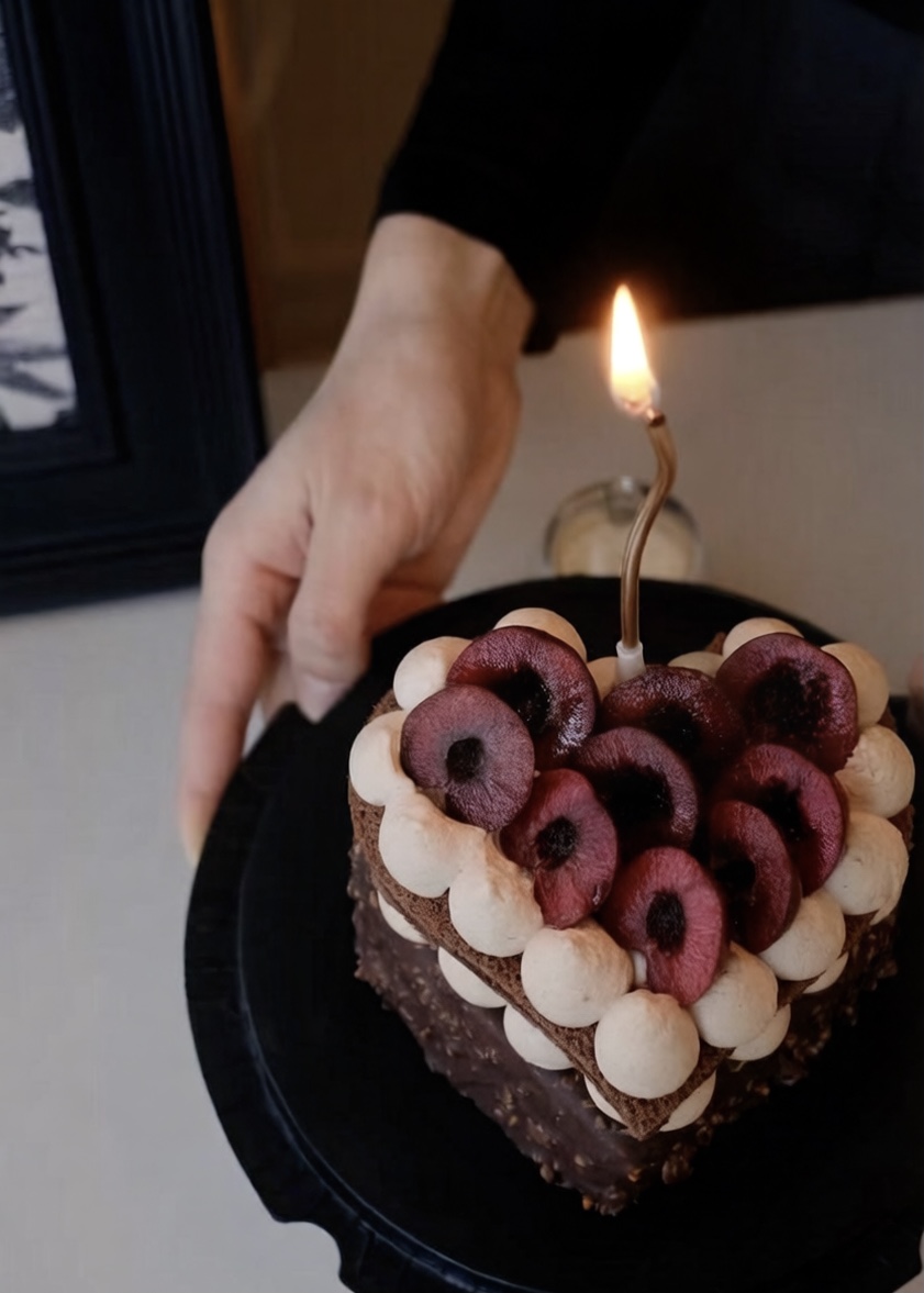 巧克力朦胧脆皮+草莓夹心+车厘子装饰