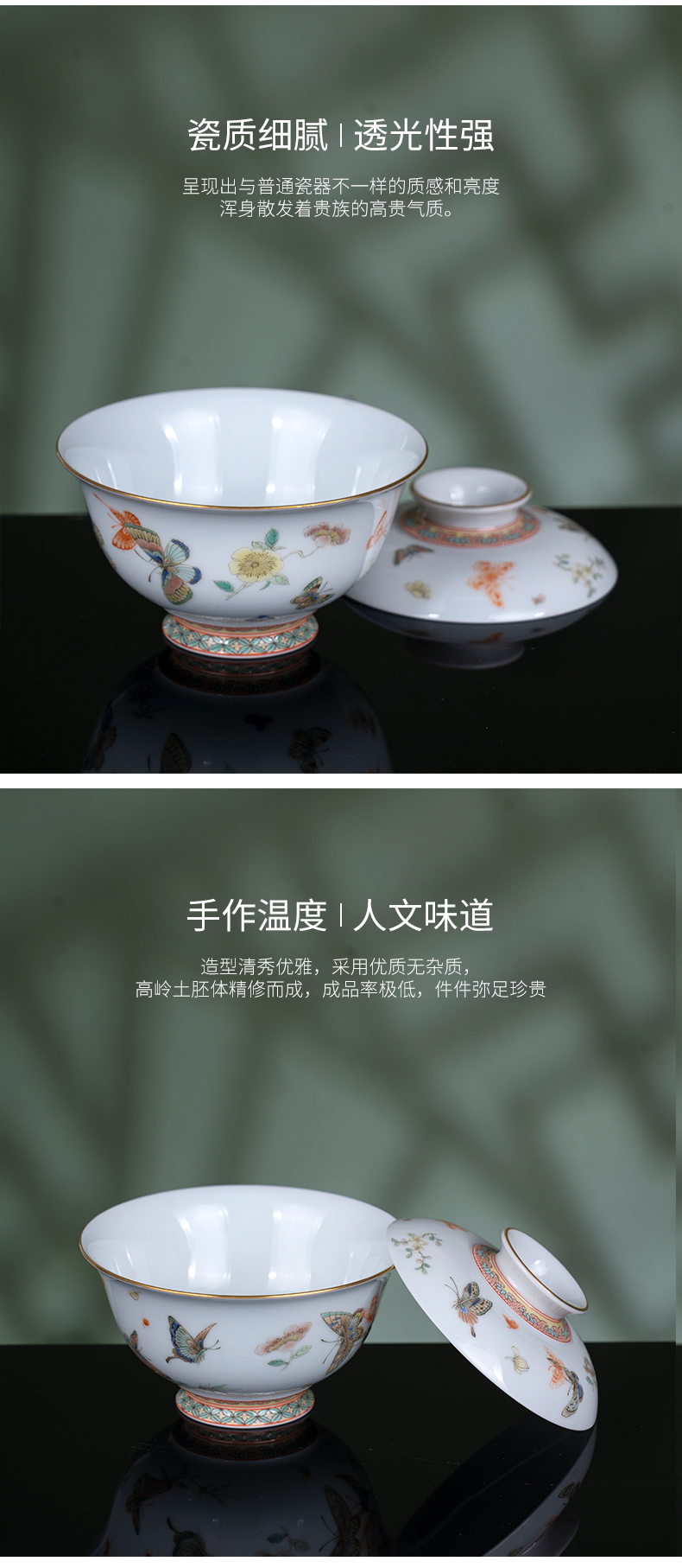 古彩描金蝶恋花盖碗 商品图4