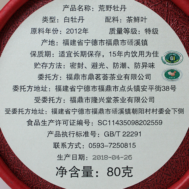 鼎茗荟丨十二年陈 荒野牡丹 福鼎白茶 2012年 80g 磻溪产地