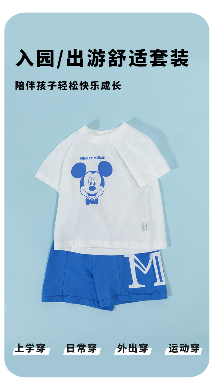 迪士尼经典米奇24夏款男童短袖套装纯棉舒适透气短袖短裤两件套ZD2DT004