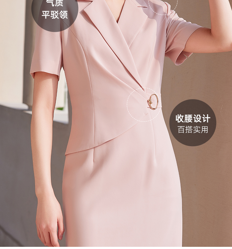 粉蓝藏青限时秒杀!299艾尚臣短袖连衣裙女2024年夏季气质女神范修身裙子通勤职业套装裙
