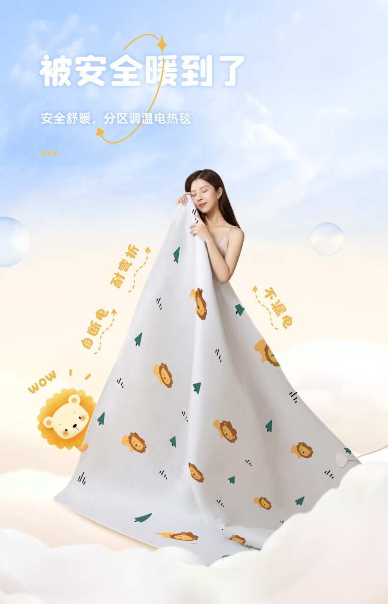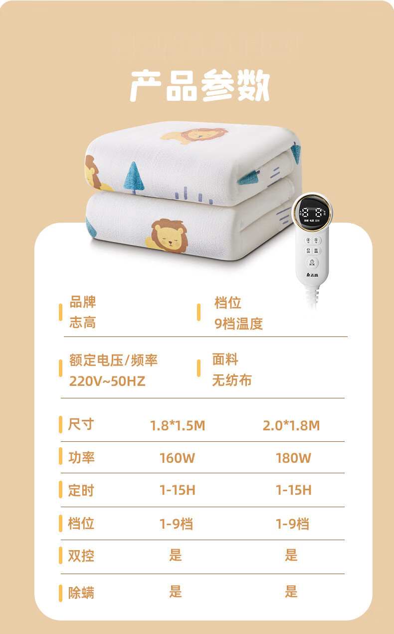 志高除螨电热毯电褥子亲肤长毛绒【150*70cm】单人单控【定时除螨】深咖或浅咖