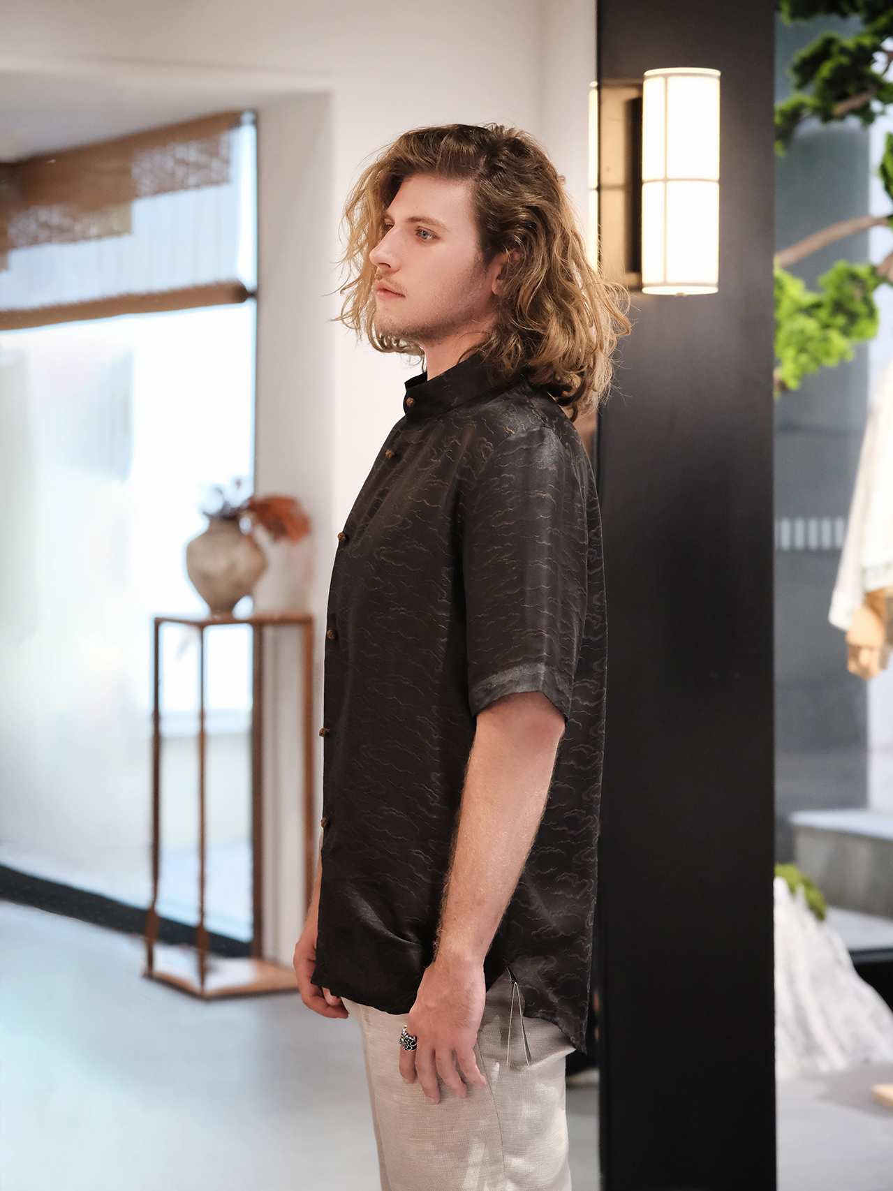 盛唐牡丹|重缎提花香云纱男士衬衫