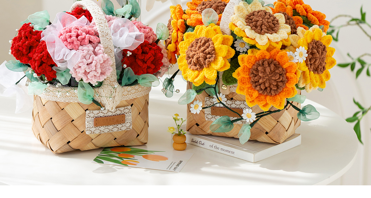 苏苏姐家拾漾花卉手工花束diy编织礼物钩针粗毛线团向日葵材料包譱
