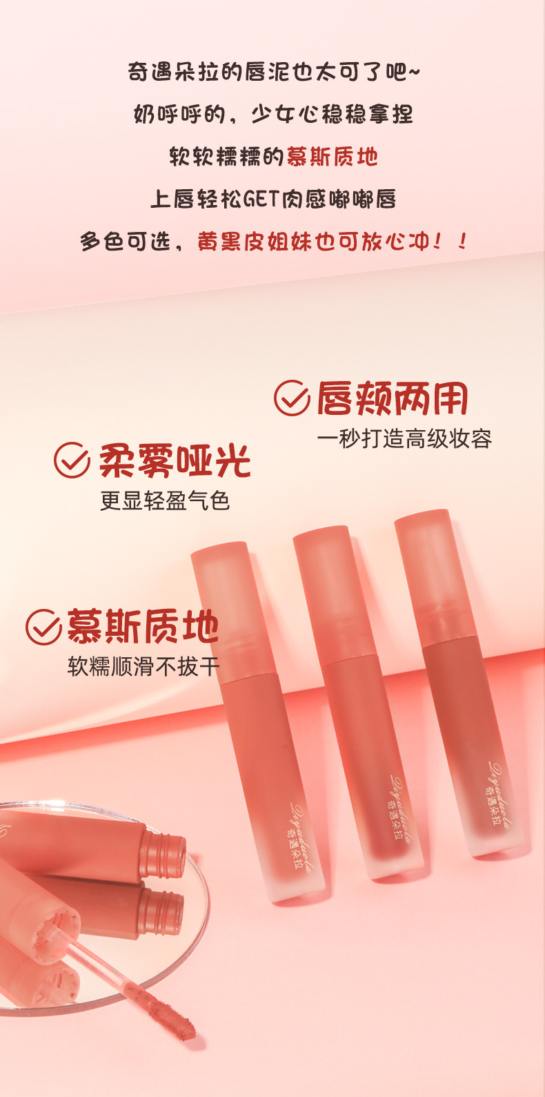 【重磅新品,白月光口红唇釉】puuco奇遇朵拉白月光口红,慕斯柔雾显润不拔干哑光雾面唇泥,多色可选黄黑皮姐妹也可放心冲平价学生党QQ
