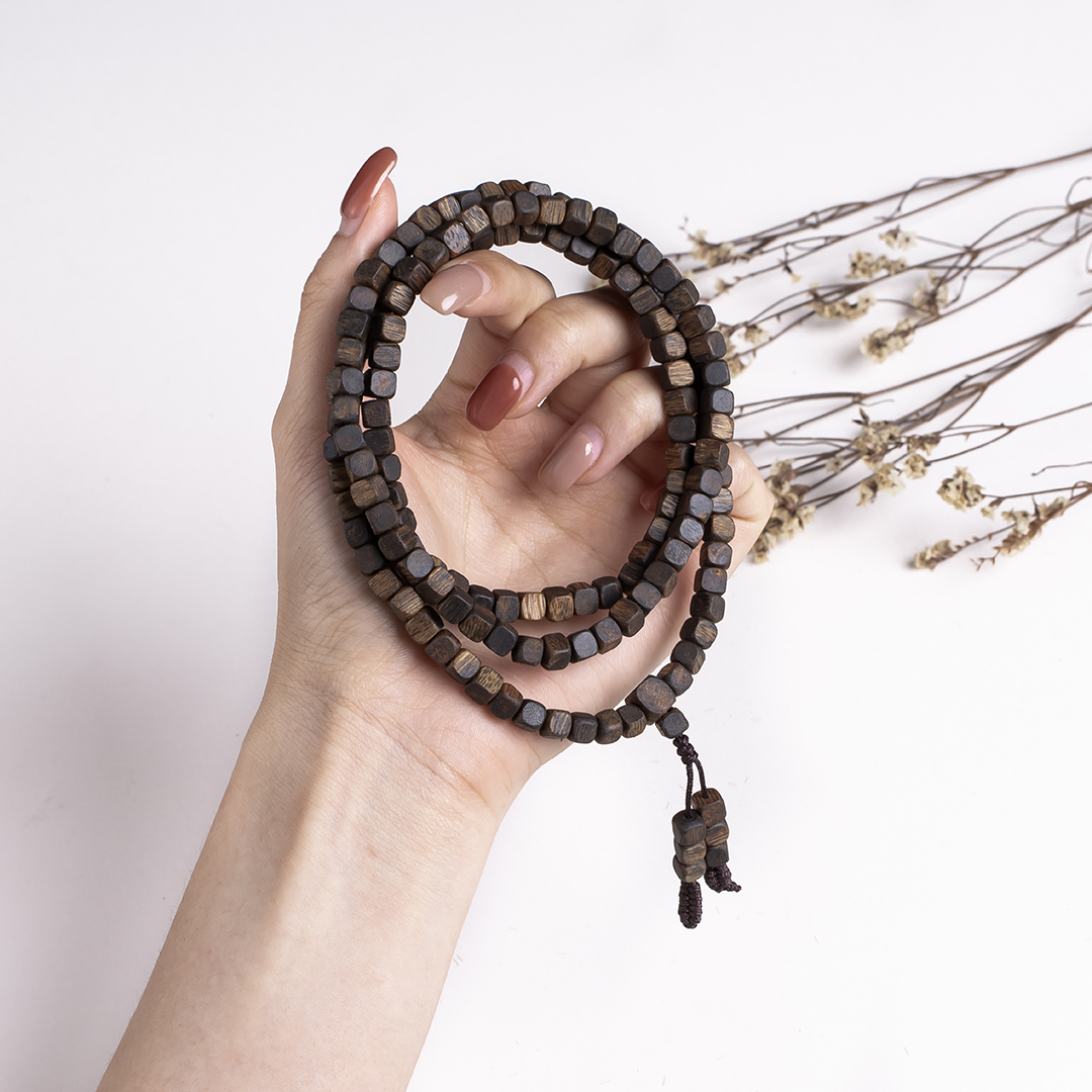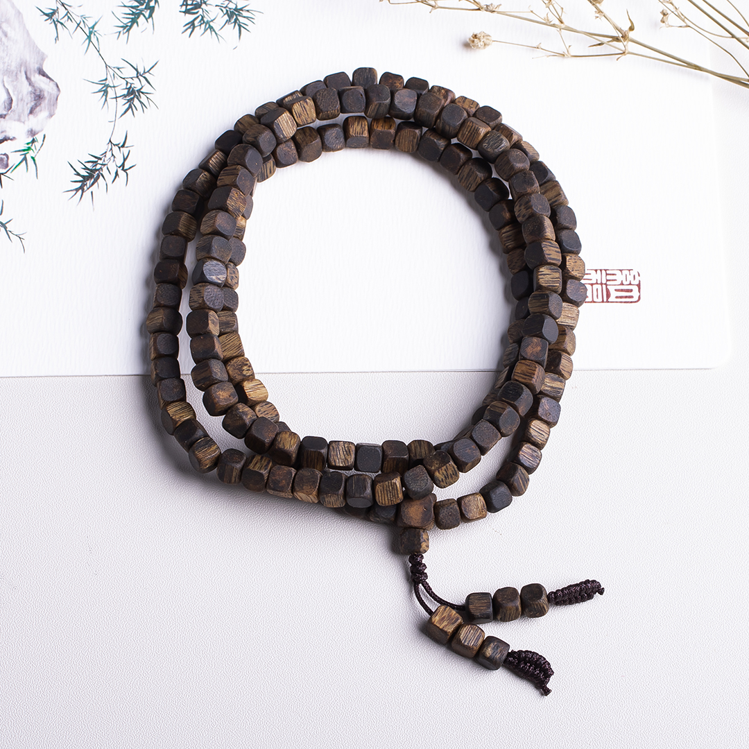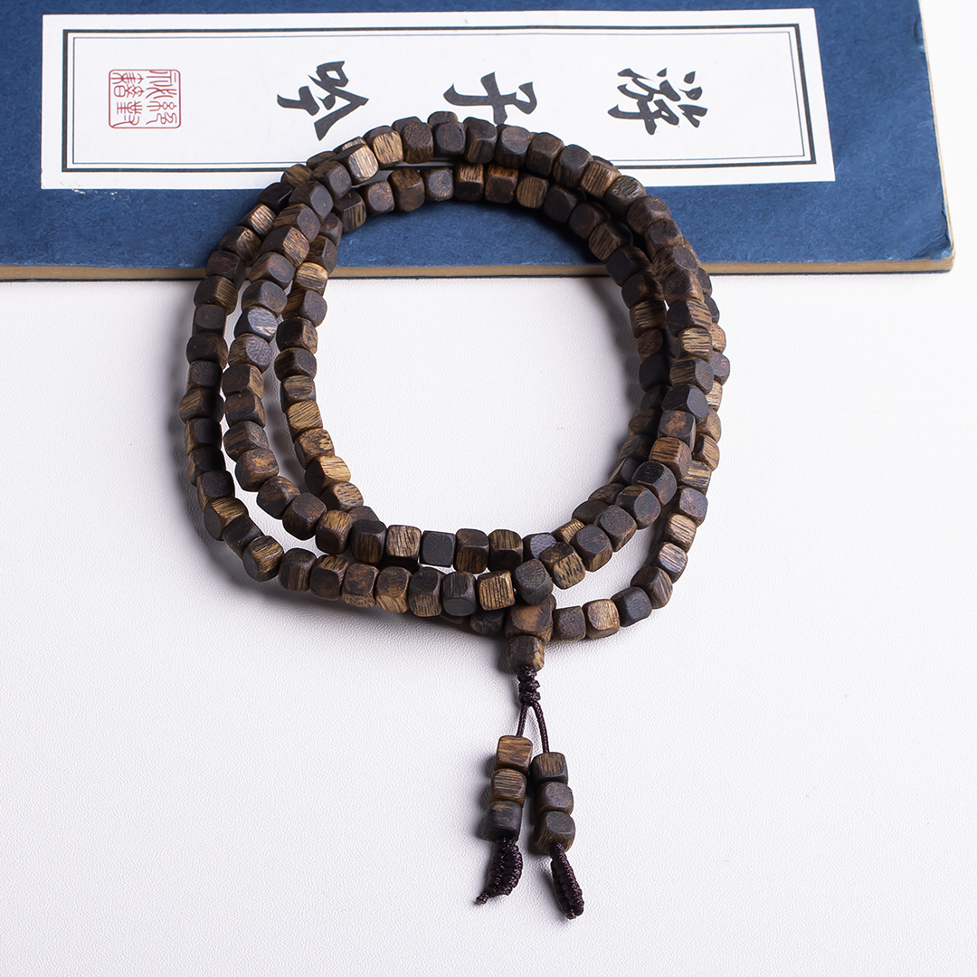 xy0423,5.5mm方形珠沉香108佛珠多圈手链/项链,天然沉香原色原味,香味自然清甜,方形切割,四四方方,也是大大方方,平凡中带着个性的追求,心浮气躁时闻一闻,心情轻松愉悦很多。实数为138颗。