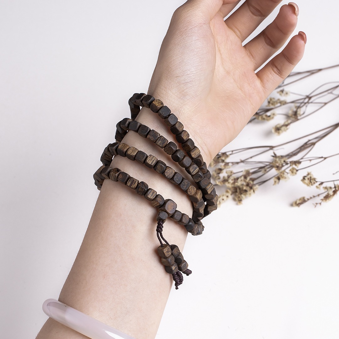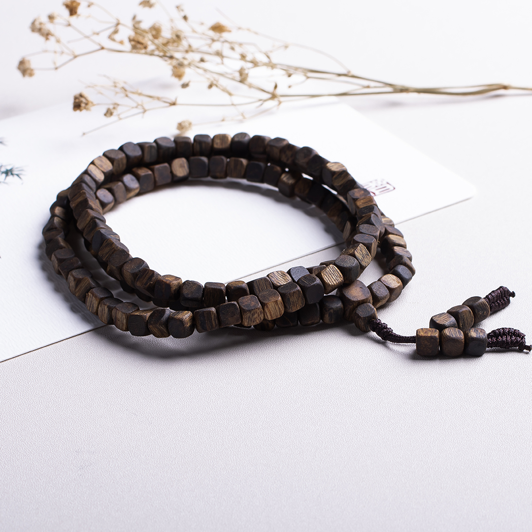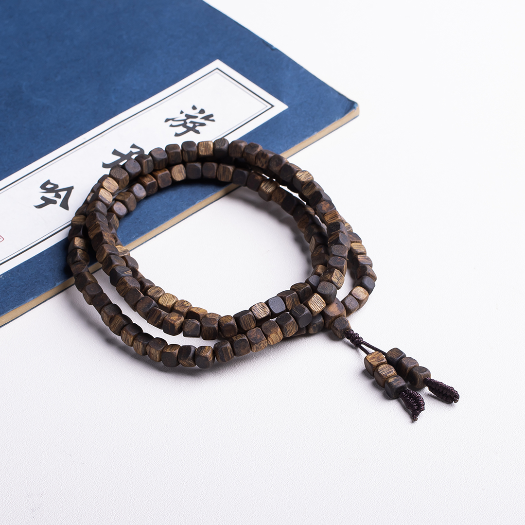 xy0423,5.5mm方形珠沉香108佛珠多圈手链/项链,天然沉香原色原味,香味自然清甜,方形切割,四四方方,也是大大方方,平凡中带着个性的追求,心浮气躁时闻一闻,心情轻松愉悦很多。实数为138颗。
