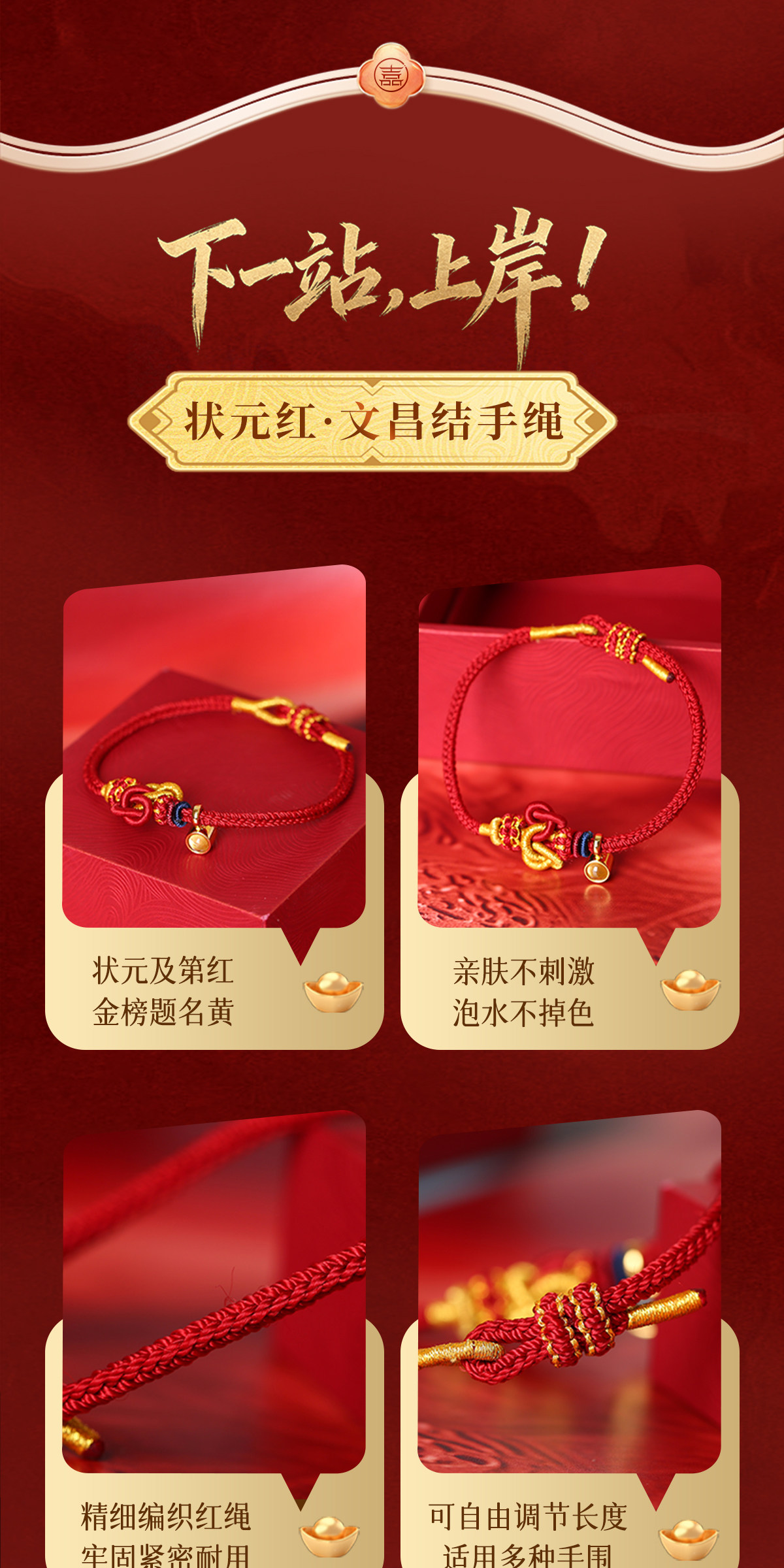 【祈愿吉品】上岸文昌结文昌帝君投影红绳手链中高考学生礼物
