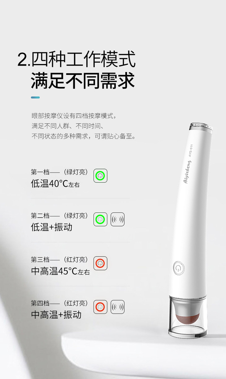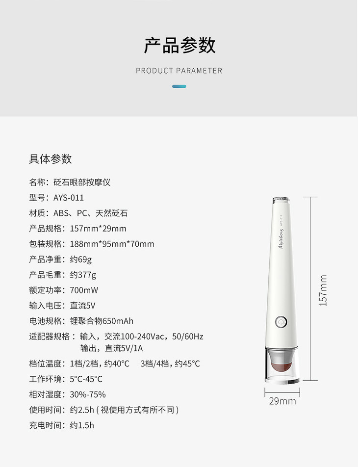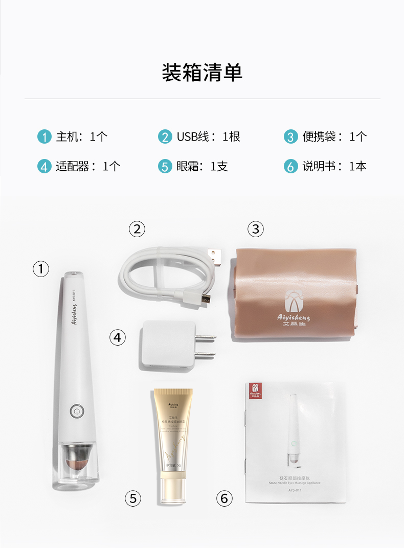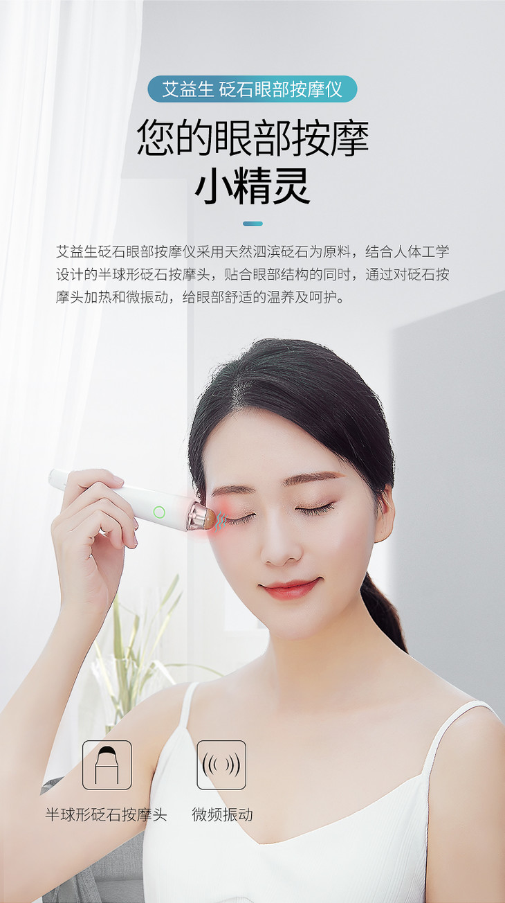 2.温馨提示:艾益生砭石眼部按摩仪的按摩头材质为上等天然泗滨砭石。由于砭石的自身特点,亲们收到时可能有明显纹路(并非裂纹)和颜色差别,这是正常现象,并非产品质量问题,请大家放心使用。