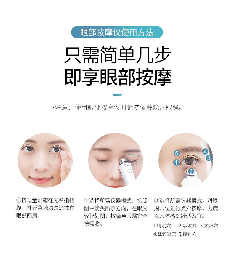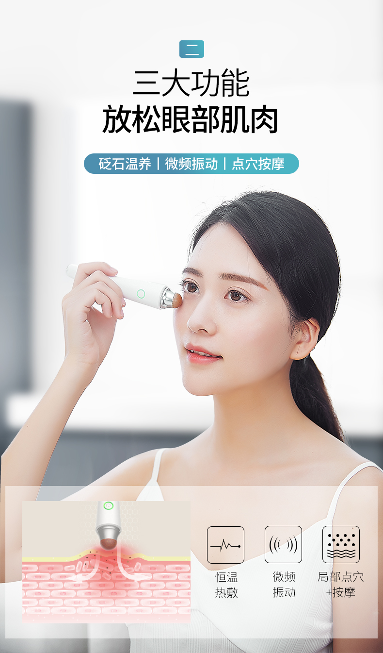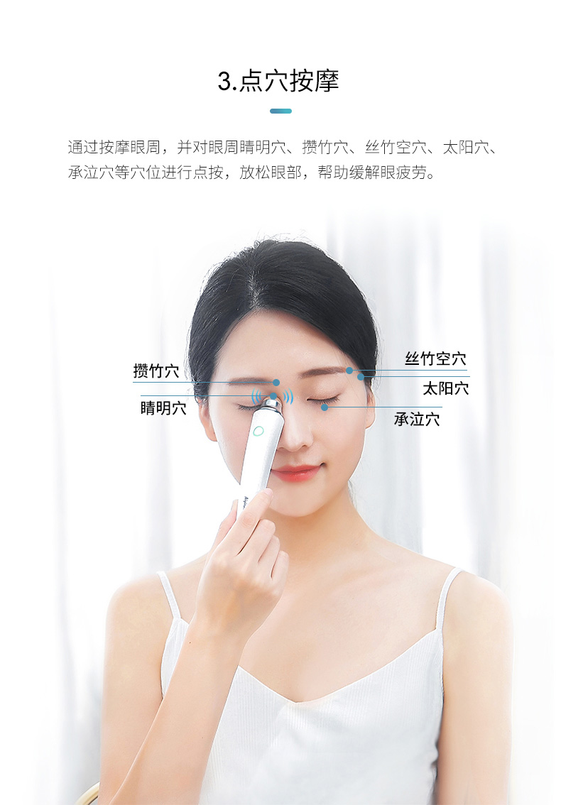 答:可每天用于点按眼周穴位,帮助放松眼周肌肉。使用时,不建议以来回按摩眼周的方式每天使用,以免手法、力度掌握不当,拉扯到皮肤。此外,使用时手法宜轻,并记得涂抹充分的眼霜哦。