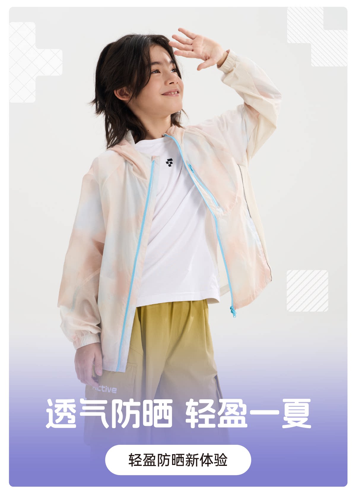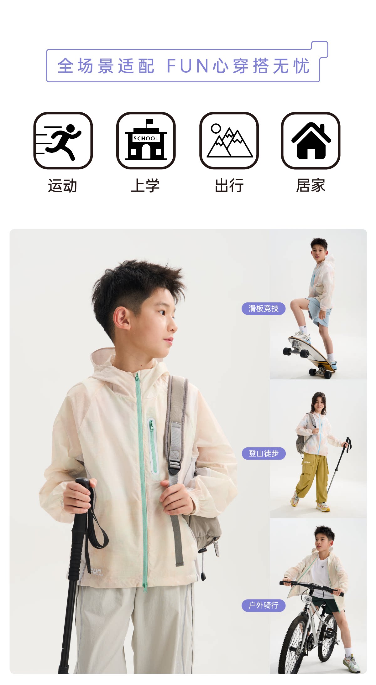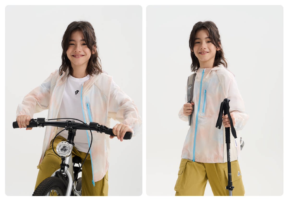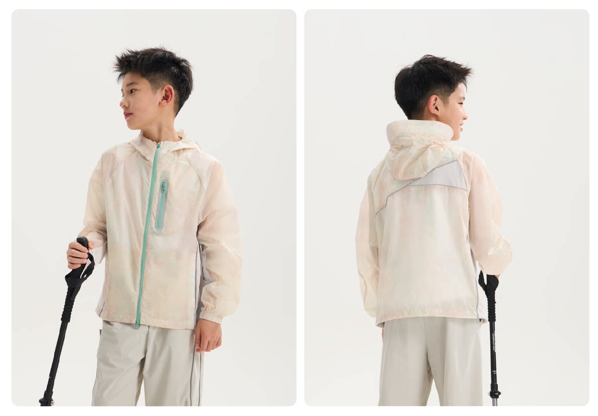 funactive男童印花防晒衣儿童轻薄户外连帽运动外套F1UW10408