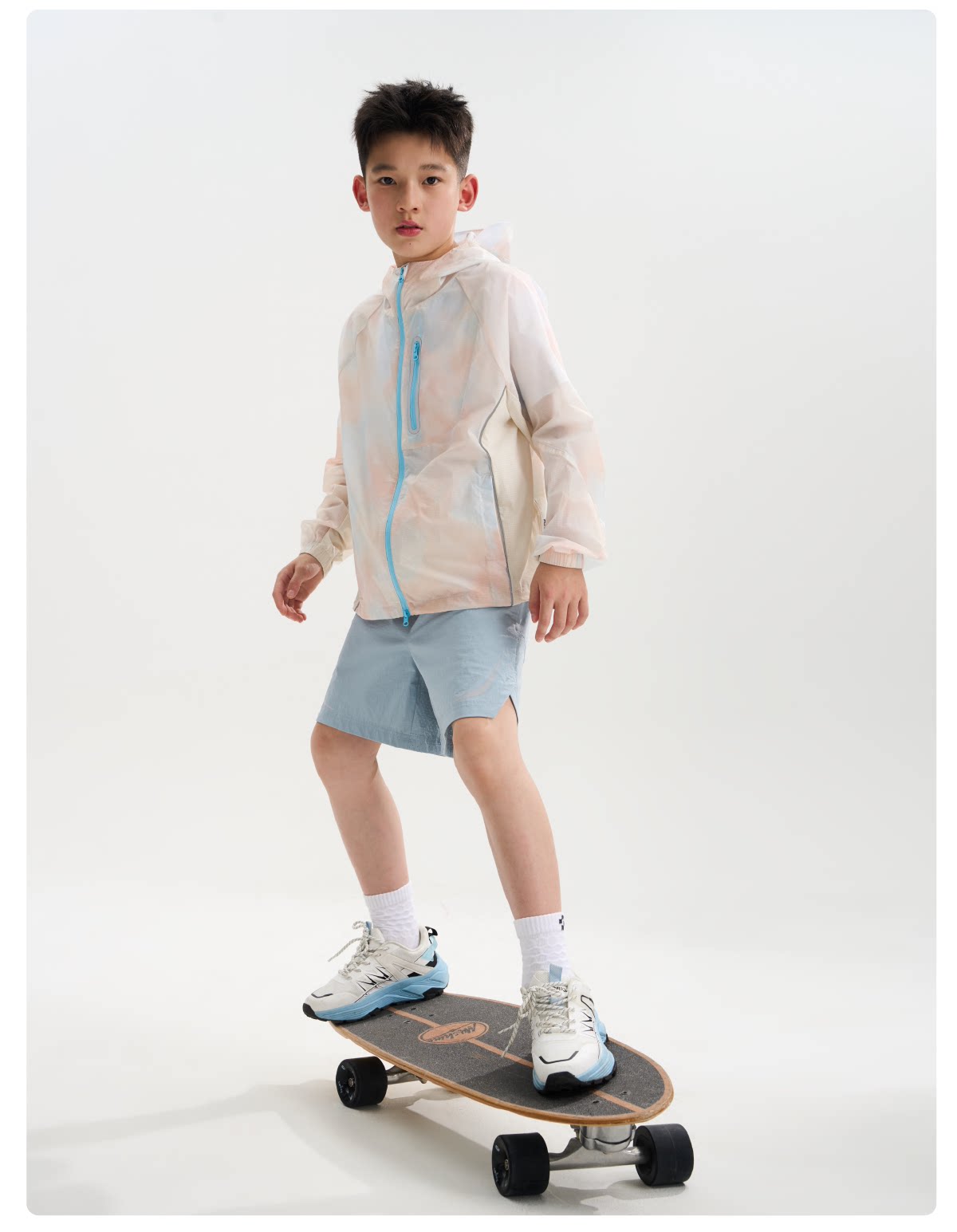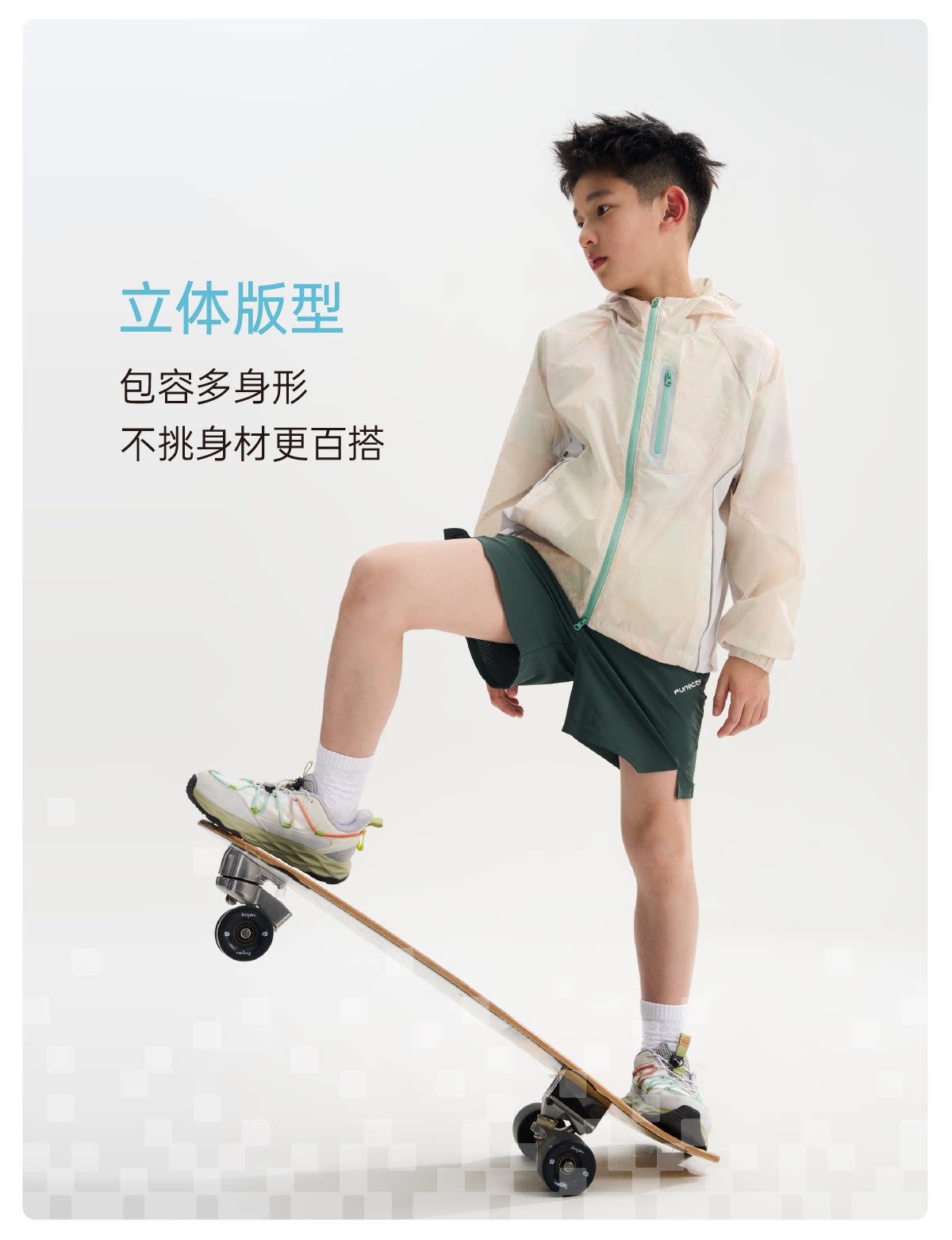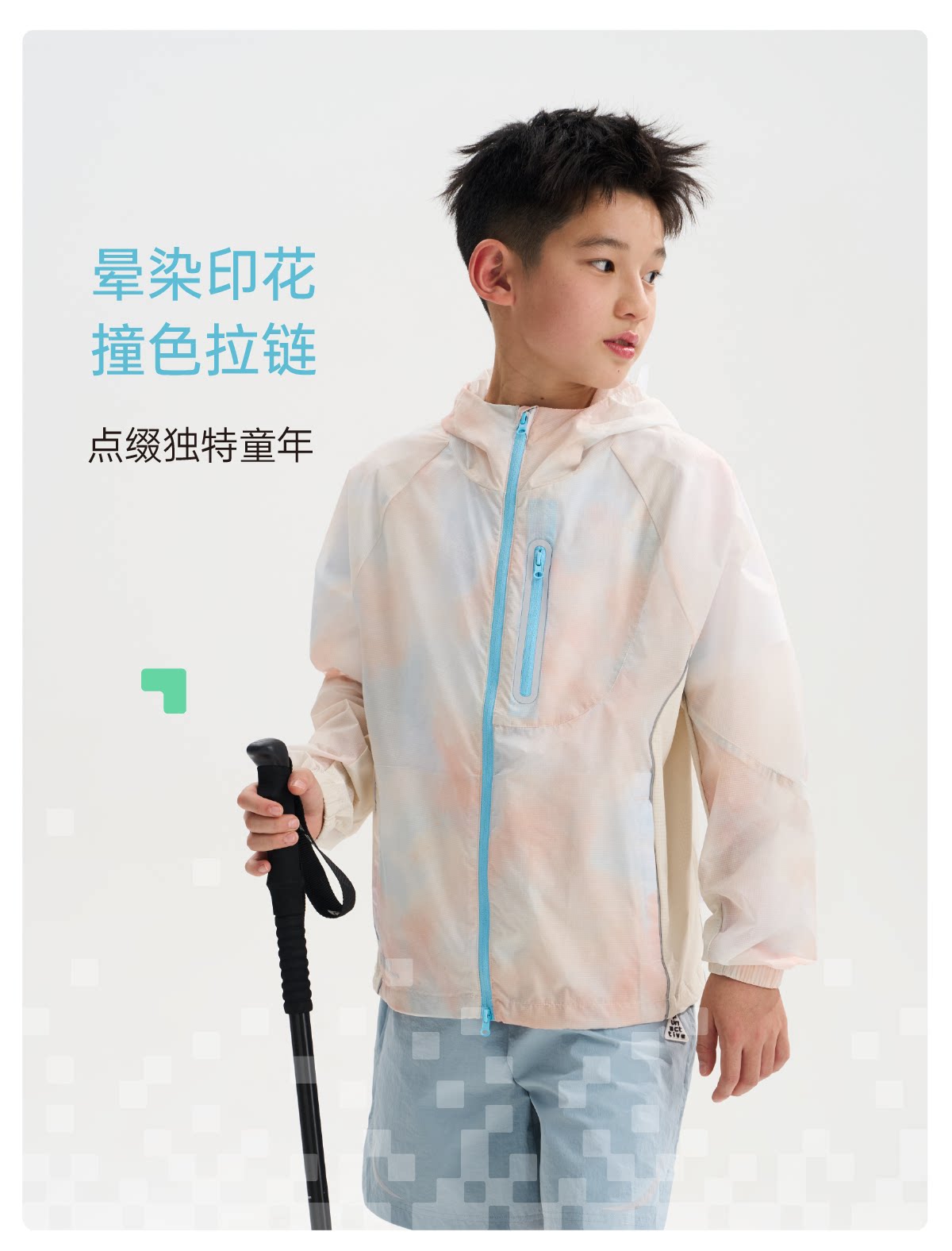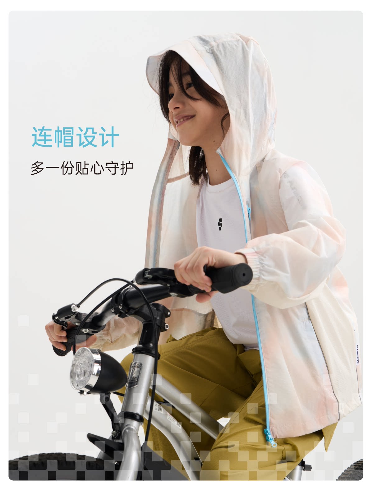 funactive男童印花防晒衣儿童轻薄户外连帽运动外套F1UW10408