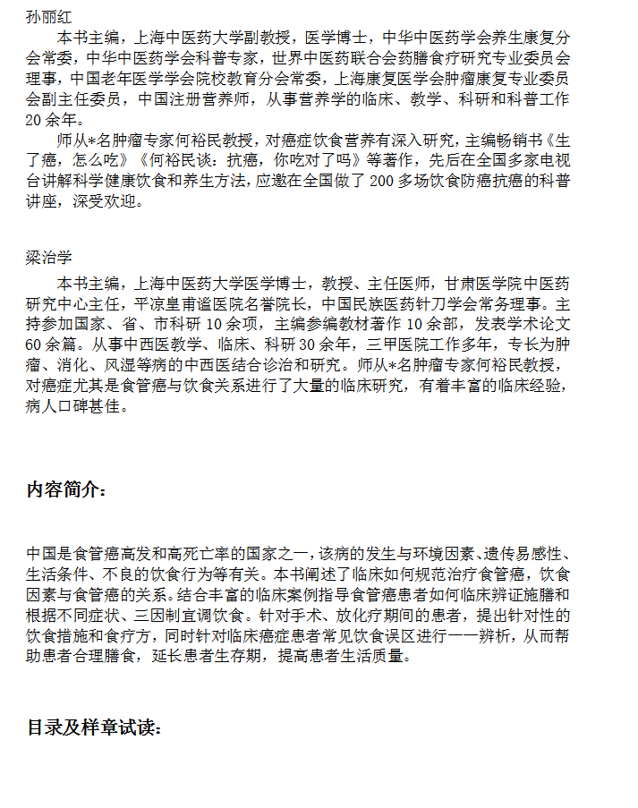 精准饮食抗癌智慧:生了食管癌,怎么吃 畅销书著者何裕民孙丽红 *新力作 饮食 防控 科学