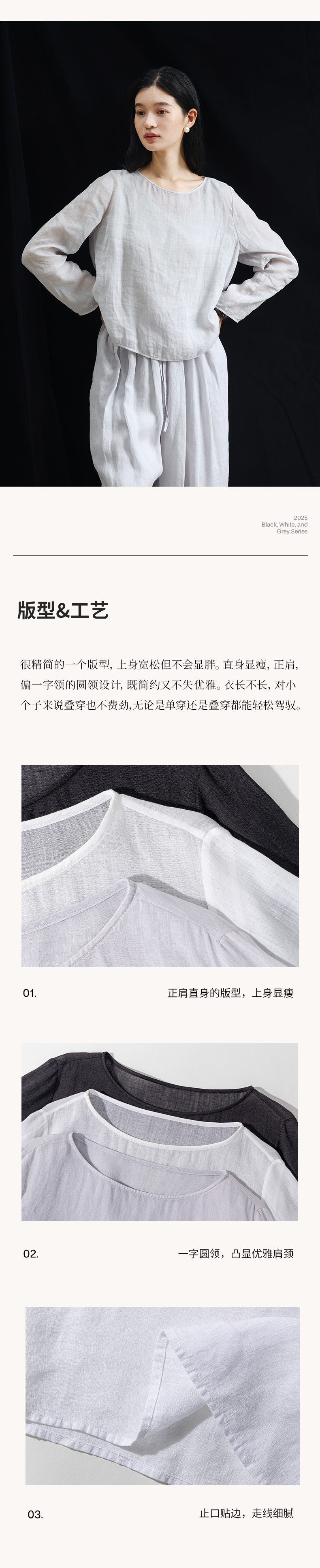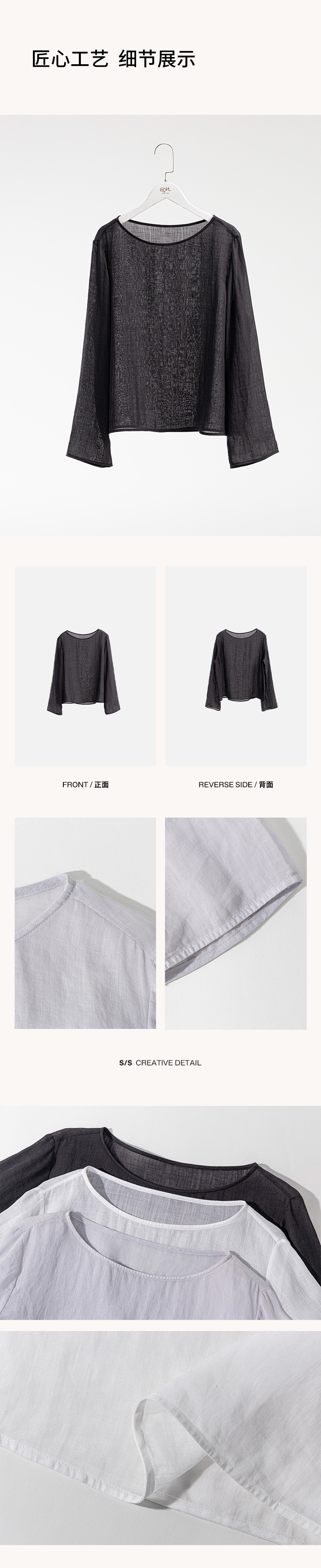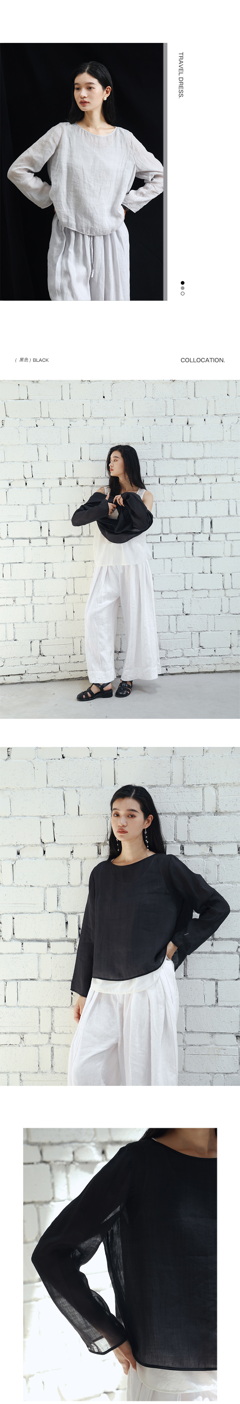 绽放旅行女装456朵/【黑白灰系列·无为小衫】高支苎麻长袖衬衫女