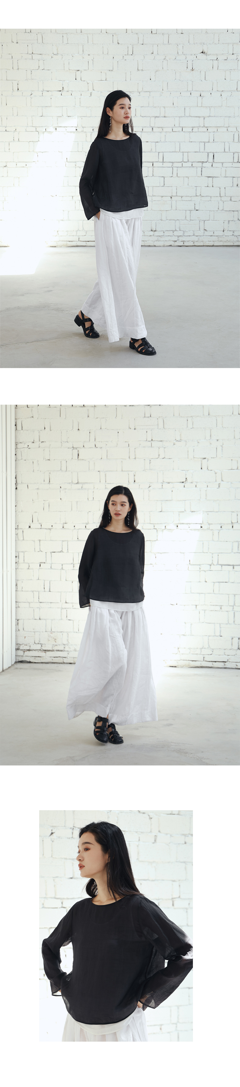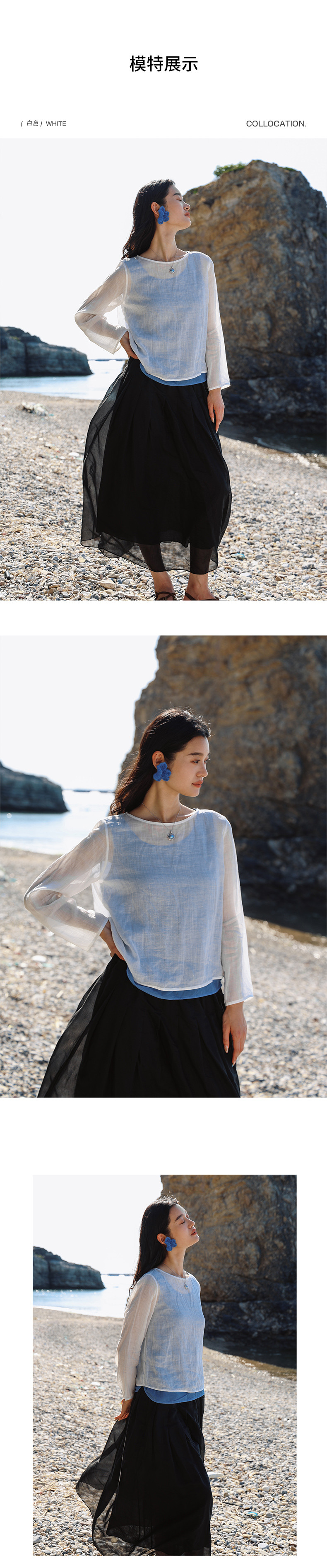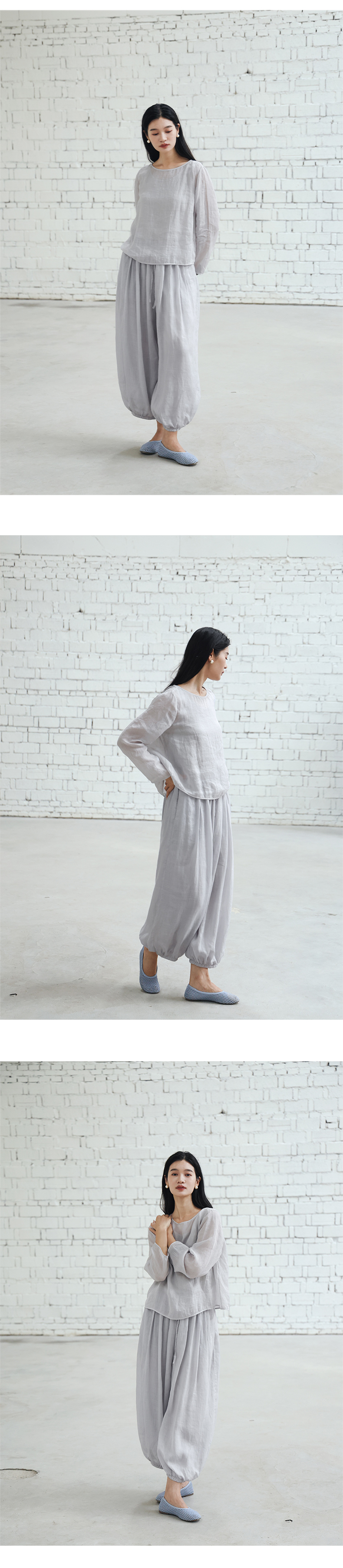 绽放旅行女装456朵/【黑白灰系列·无为小衫】高支苎麻长袖衬衫女