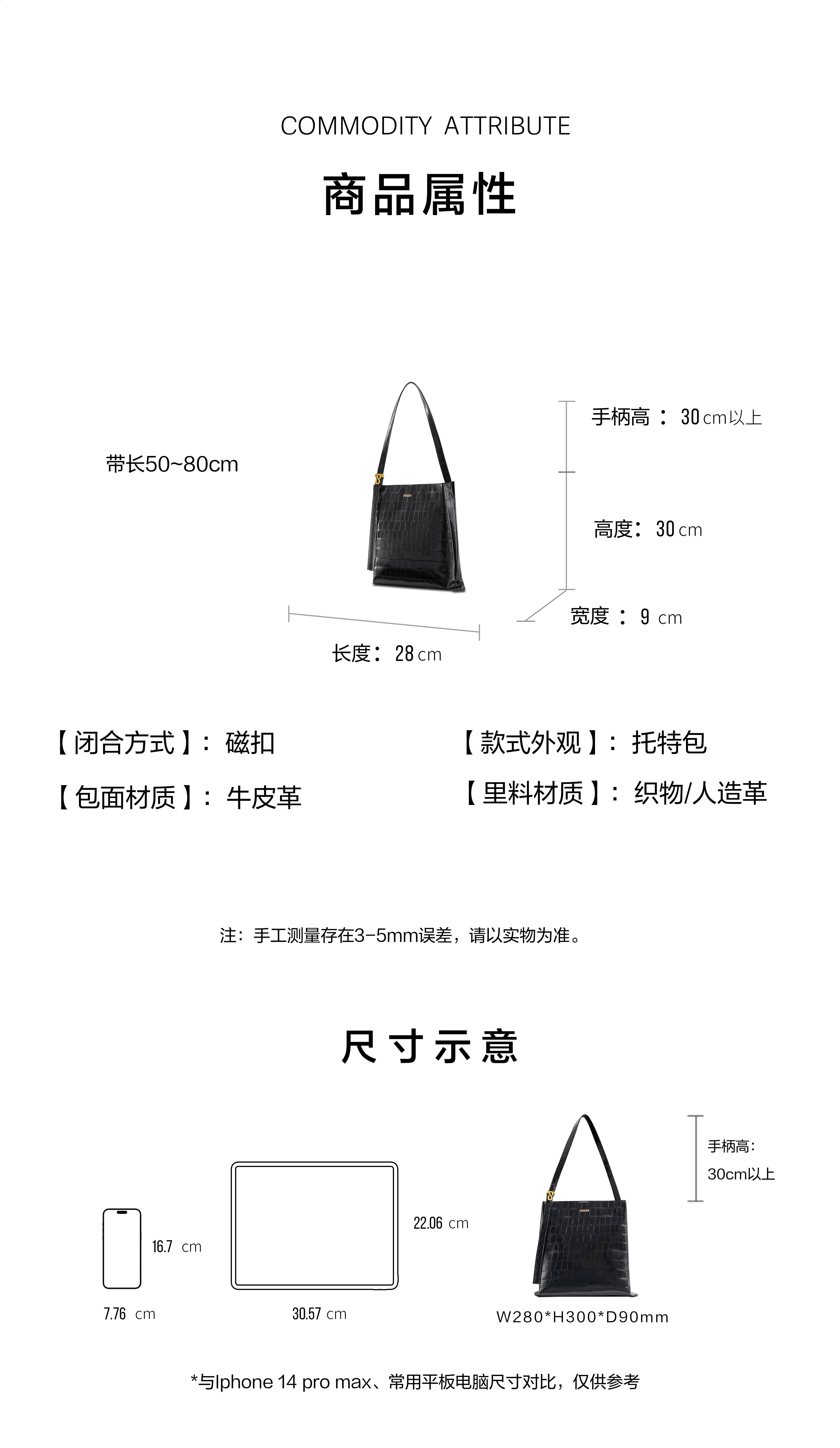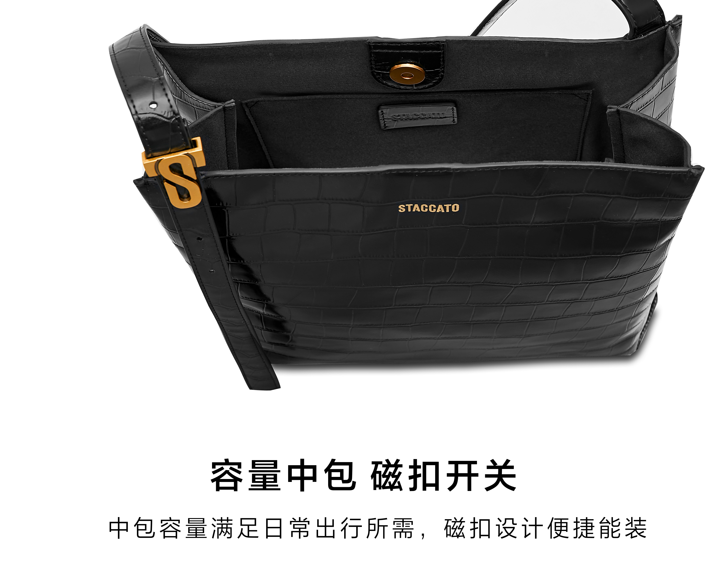 【2F】思加图2023秋季新款高级托特包小方包单肩包黑色背提女包X3043CX3
