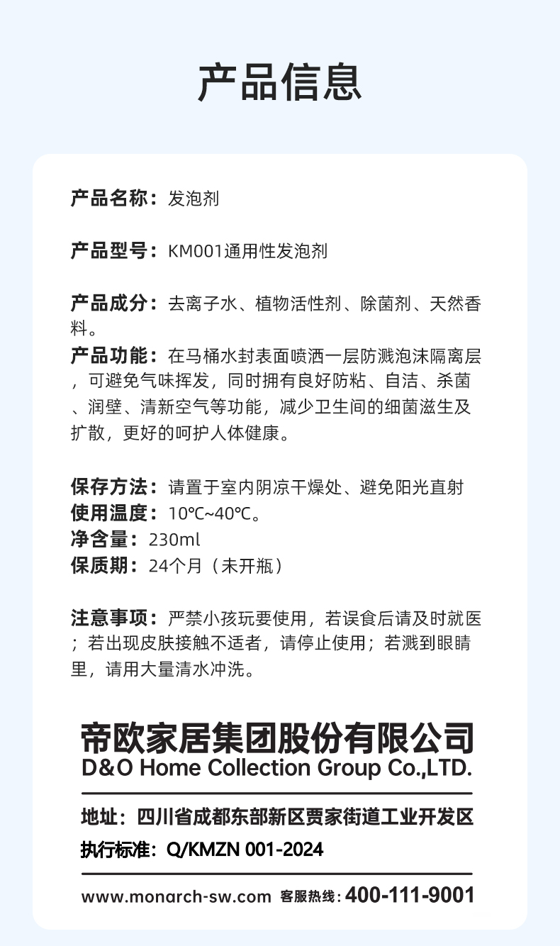 帝王智能马桶专用泡沫盾补泡剂 通用型