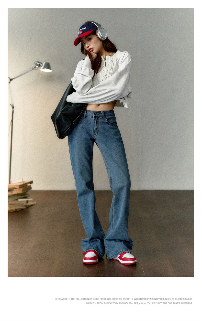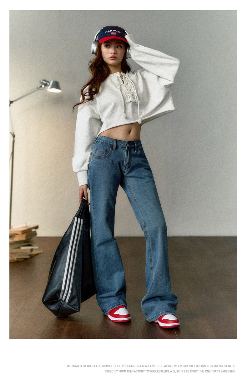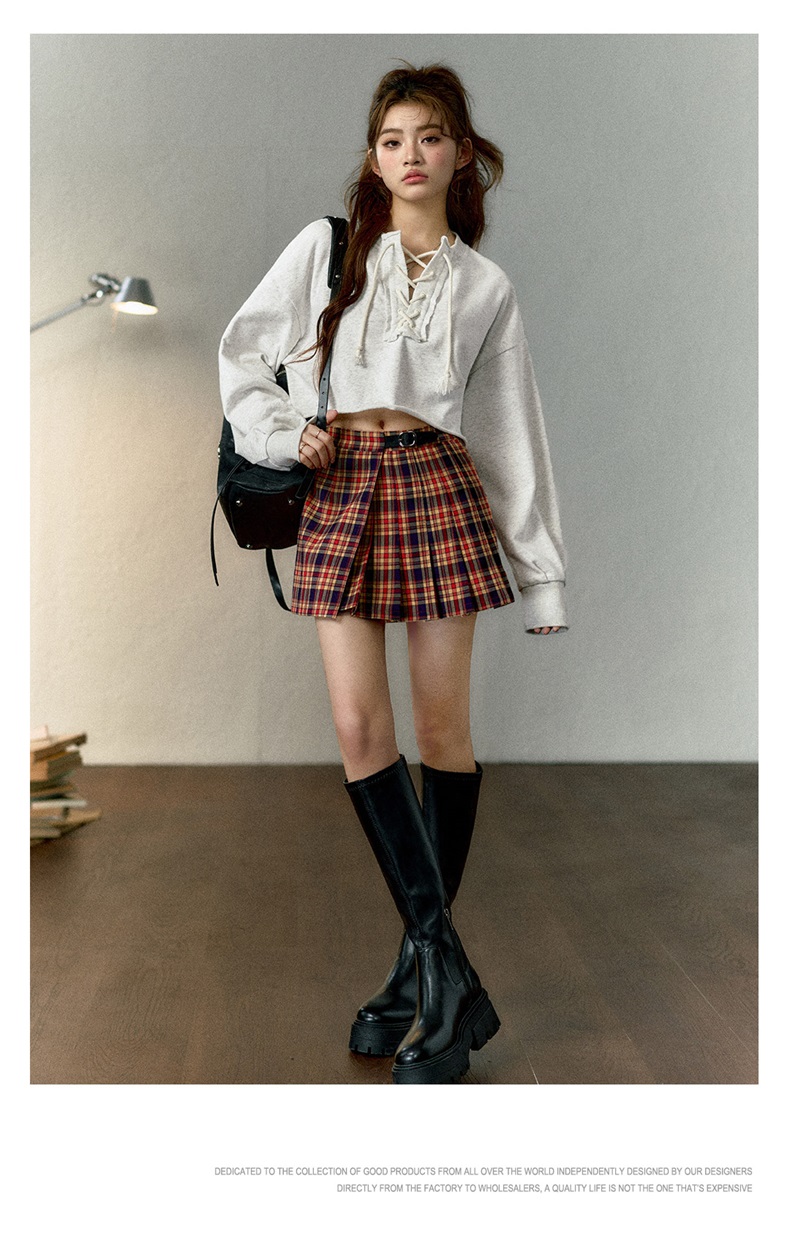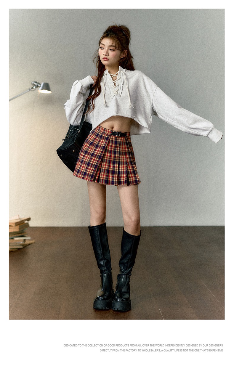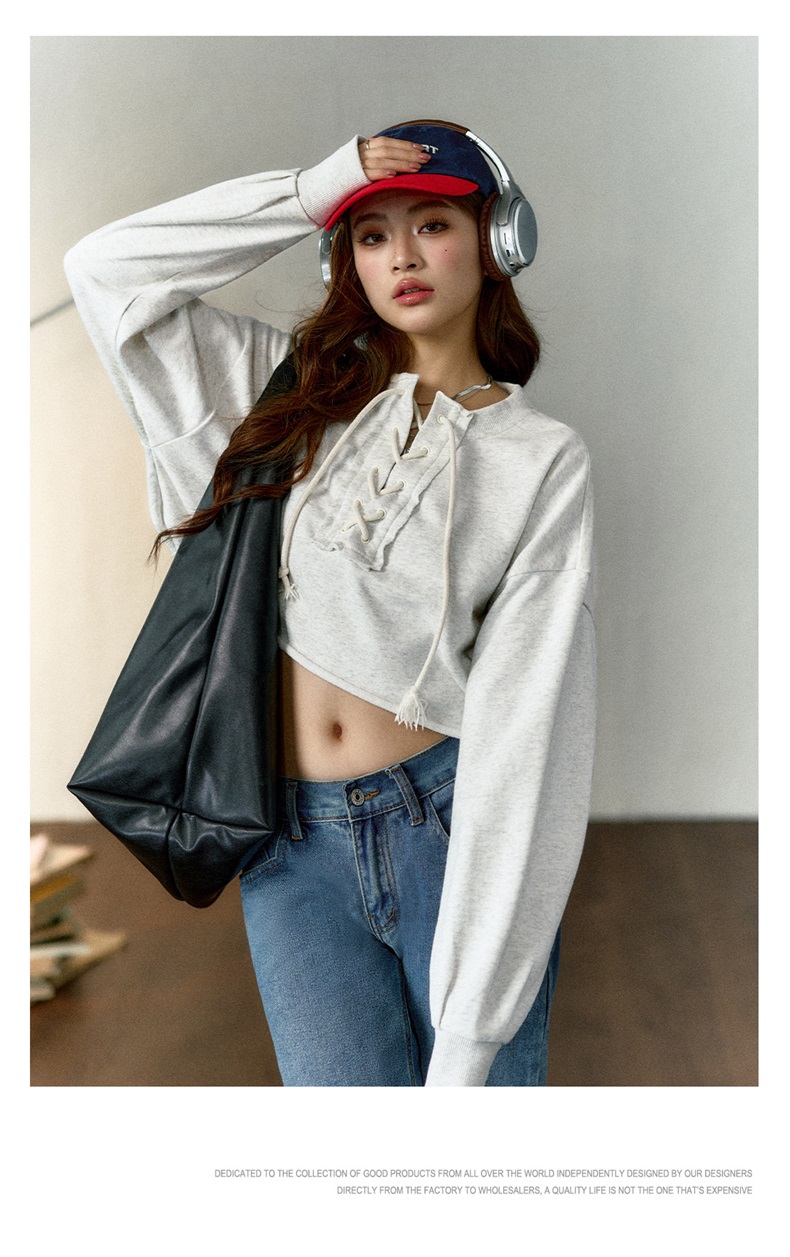 马登高腰短款卫衣春秋抽绳V领休闲宽松长袖甜酷上衣设计感小众女
